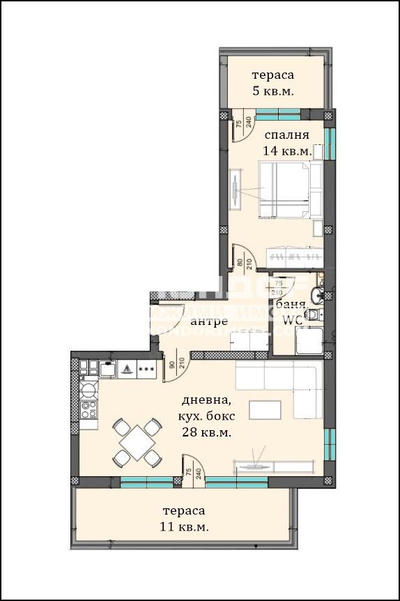 Оферта 53927:АКТ 16!!! БЕЗ КОМИСИОННА ОТ КУПУВАЧА !!! Предлагаме Ви възможността да закупите панорамен 2-стаен апартамент в луксозен жилищен комплекс с модерна визия, проектиран да създаде максимален комфорт на живущите в него. Едно от основните му предимства е страхотната локация, разположен на пешеходна близост до Централна градска част. Той съчетава лукс, спокойствие и комфорт, с подсигурени паркоместа и гаражи. Жилището се състои от функционална и просторна южна дневна с трапезария и кухненски бокс с излаз на една разкошна тераса с чудесен изглед , самостоятелна и непреходна спалня с излаз на втора тераса , баня с тоалетна и широко входно антре . Основната концепция при проектирането е да се постигнат просторни и функционални стаи, с цел да се създаде максимален уют на модерното семейство. Изключителна съвременна архитектура и модерна технология на строителство. Визията е иновативна, привличаща внимание с уникалността си. Безопасна и сигурна среда за пребиваващите допълват комфорта на сградата. Всяко жилище ще разполага с пълно окабеляване за домофон, интернет и кабелна телевизия, общите части са луксозно завършени, жилищата са с алуминиева дограма с троен стъклопакет от най-висок клас, масивна блиндирана входна врата. За удобство на живущите съществува възможността да закупят подземни паркоместа и гаражи с топла връзка към комплекса . Гъвкави схеми на разсрочено плащане спрямо възможностите на клиента в рамките на строителството или закупуване чрез Банков Кредит, на изключително изгодни условия за клиенти на агенцията !!!