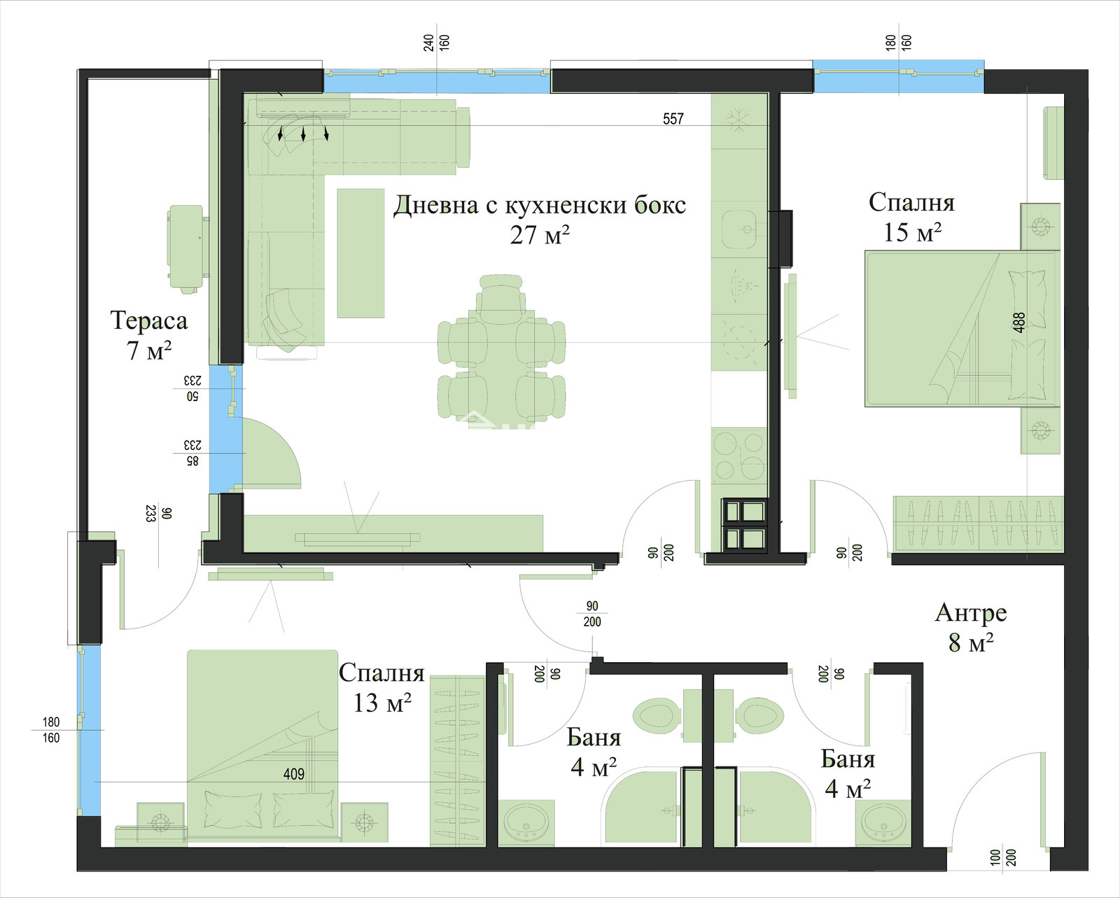 Оферта 60737: Предлагаме Ви тристаен апартамент с перфектно разпределение в новоизграждаща се модерна сграда със собствен стил с изчистена визия, проектирана така, че да създаде максимален комфорт и уют за живеене. Жилището се състои от просторна ъглова дневна с трапезария и кухненски бокс 27 кв.м., две големи самостоятелни спални: родителска 13кв.м. със собствена баня, детска 15кв.м., входно антре, втора баня с тоалетна и една тераса. Сградата привлича вниманието със своята локация, разположена в близост до Гребна база и парк Отдих и култура, обособили се като едни от най-развиващите се и предпочитани райони за живеене в града. Изпълнението се осъществява от инвеститор с доказан опит и утвърден имидж, като се използват висококачествени материали и съвременни технологии, по европейски стандарт, шесткамерна PVC дограма с троен стъклопакет, блиндирана входна врата с 4-странно заключване, сензорно осветление, хидравлични асансьори с огледална кабина. Гъвкави схеми на разсрочено плащане в рамките на строителството, както и съдействие за банково кредитиране с изключително изгодни условия за клиенти на агенция 'Кондор'! СВОБОДНИ ПОДЗЕМНИ ГАРАЖИ и Паркоместа! Приложените снимки са от друга готова сграда на същия строител.ВИЖТЕ ОЩЕ ИЗГОДНИ ОФЕРТИ НА https://www.kondorimoti.com/ С ЕЖЕДНЕВНА АКТУАЛИЗАЦИЯ!
