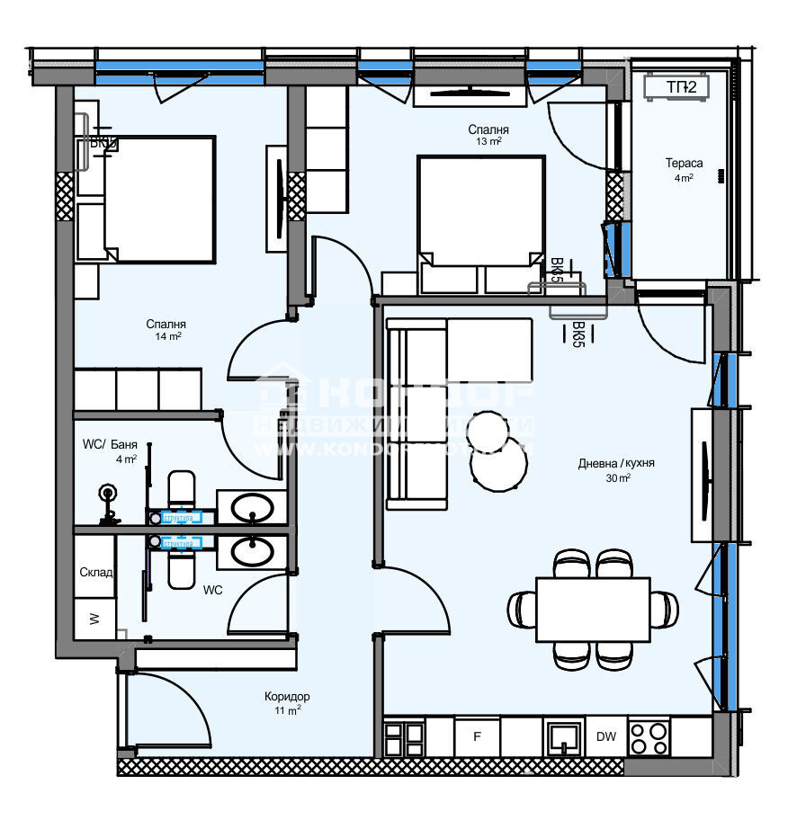 Оферта 64682: Представяме на Вашето внимание един проект на водеща фирма в изграждането на комплекси от затворен тип в град Пловдив. Строителната компанията акцентира върху комфорта, безопасността и сигурността в своите комплекси, естетичното оформление на пространството около сградите и отлично развитата инфраструктура, сред която умело да бъдат съчетавани работа, развлечения, спорт и почивка. Апартаментът, които ви предлагаме се състои от дневна с кухненска част 29кв.м., две самостоятелни спални: детска 13кв.м. и родителска 14кв.м. със собствена баня с тоалетна, втора тоалетна, склад, входно антре с място за гардероб и една тераса. Най-новият проект на компанията е луксозен комплекс, който е разположен в северната част на град Пловдив, обграден от природа, която дава неподправено усещане за простор и спокойствие, с невероятна гледка към Родопите. Комплексът се базира на концепцията за извънградски комплекс, където в голям терен се разполагат по-малки жилищни сгради, които предлагат спокойствието в покрайнините на града. В сградите има жилища с една, две и три спални, единични и двойни подземни и надземни гаражи, както и външни паркоместа. На входа на всяка сграда е поставена система за индивидуален чип, високоскоростни асансьори, а вътрешнопарковото пространство е решено в богата висока и ниска растителност, заобиколена от живописни зеленина, детска площадка и площ за спорт. Благодарение на ниската си плътност на застрояване, архитектурния си дизайн и добрата ориентация, комплексът е предпочитано място, което осигурява на обитателите си спокоен и качествен живот. Осигурено Банково Финансиране с изключително Изгодни условия за клиенти на Агенцията от Водещи Банки !!! Приложените изображения са от готови сгради на строителната компания!ВИЖТЕ ОЩЕ ИЗГОДНИ ОФЕРТИ НА https://www.kondorimoti.com/ С ЕЖЕДНЕВНА АКТУАЛИЗАЦИЯ!