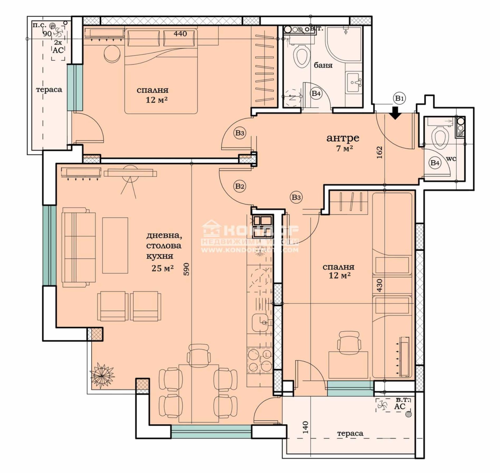 Оферта 55218: Предлагаме ви за продажба тристаен нов апартамент с югозападно изложение в новоизградена луксозна сграда с Акт 16, отличаваща се със съвременна и стилна архитектура в отличен за живеене район в непосредствена близост до Новото Кметство и Кауфланд - Перфектна локация на приятно и спокойно място в близост до училища, детска градина и удобен транспорт - ОТЛИЧНА ИНВЕСТИЦИЯ !!! Жилището има просторна дневна с трапезария и кухненски бокс 25 кв.м., две самостоятелни спални - 12 кв.м. всяка, баня с WC, отделна тоалетна, входно антре и две тераси. Към апартамента има прилежаща изба !!! Сградата е построена от реномирана Строителна Компания. Апартаментите са отвършени според всички изисквания за съвременно строителство - Блиндирана врата, 6-камерна дограма, МДФ-вътрешни врати. Луксозно завършени общите части, двойна хидро и топло изолация, италиански хидравличен асансьор, гранитено стълбище, Пясъчна мазилка на стените на стълбището, алуминиев парапет!!! Възможност за Закупуване на Паркомясто във вътрешния двор или Партерен Гараж!!! Осигурено Банково Финансиране с изключително изгодни условия за клиенти на Агенция КОНДОР!!!
