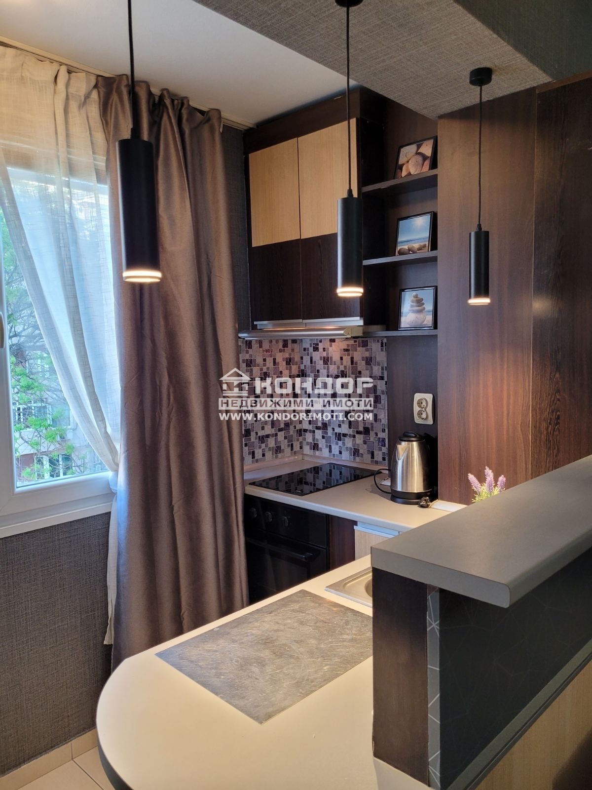 Оферта 61622: Предлагаме Ви двустаен обзаведен апартамент с РЕАЛНА КВАДРАТУРА в най-предпочитания за живеене район - Кършияка. Жилището се състои от дневна с кухненски бокс, спалня, баня и тоалетна и входно антре. Има прилежащa избa - 8 кв.м. Жилището е след основен ремонт със сменена дограма, ВиК и ЕЛ. инсталация. Отоплението и охлаждането е посредством климатик. Имотът е напълно обзаведен и готов за нанасяне. Апартаментът се намира на изключително комуникативно място - в близост до Новотела и Центъра на града . Възможност за свободно паркиране около сградата.