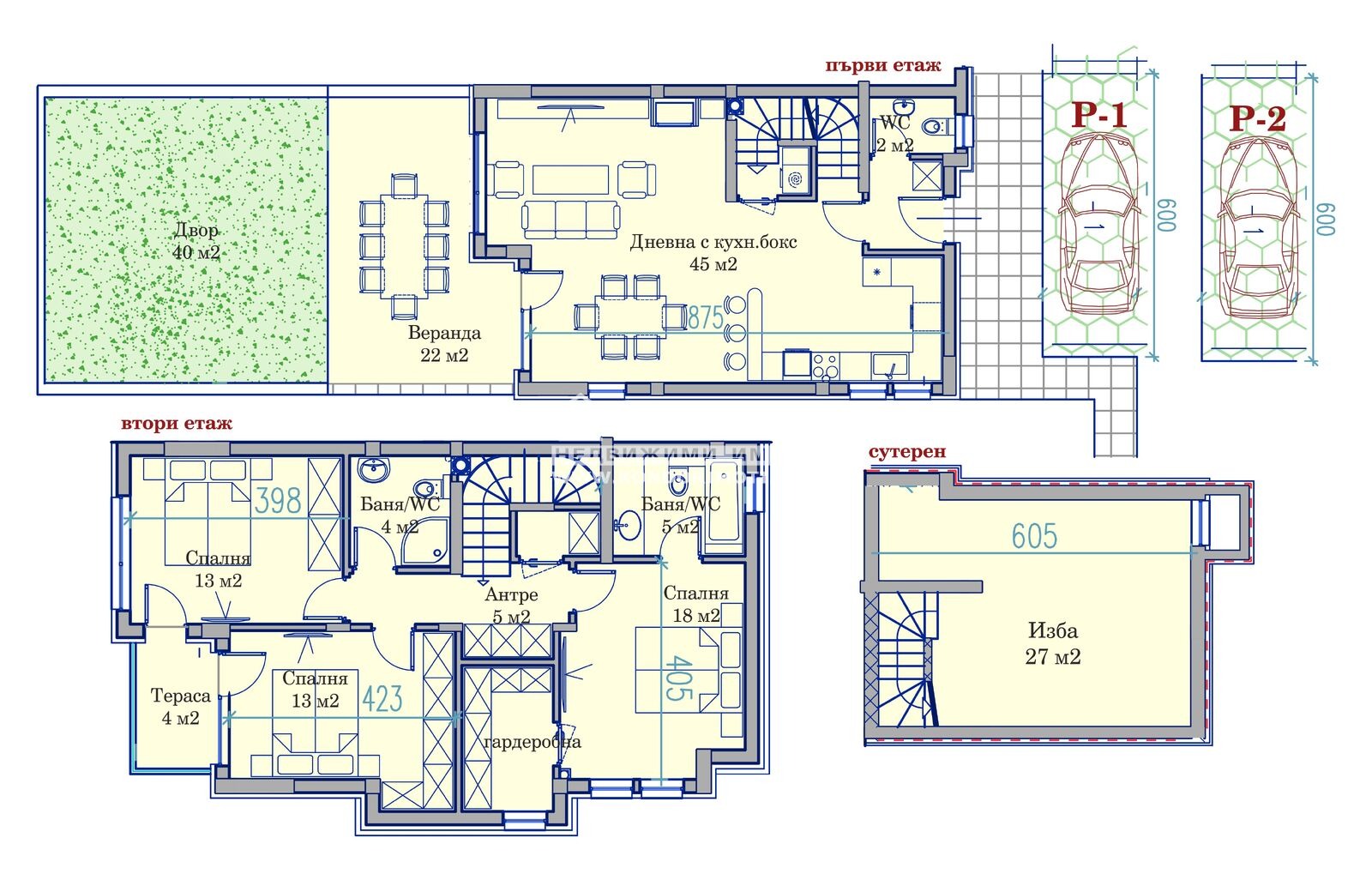 Оферта 66579: Гъвкави схеми на Плащане с опцията 20% на Предварителен Договор и 80% на Акт 14 и вариант за 80% на Акт 16 !!! Предлагаме Ви еднофамилна къща в един от най- иновативните ни жилищни комплекси от луксозни градски къщи със собствен стил, изчистена и модерна визия, проектиран така, че да създаде максимален комфорт и уют за живеене. Проектът предвижда комплексно застрояване от просторни и панорамни къщи, озеленен вътрешен двор с оформен детски кът и зелени зони за релакс и почивка. Паркирането е решено с по две Паркоместа към всяка къща включени в обявената продажна цена. Къщите са разделени в два оснтовни типа редови и дуплекс, като всяка от тях разполага с двор , веранда и две паркоместа. Конкретната къща е със следното разпределение : на първо ниво са разположени просторна и слънчева дневнва - 45.00 кв.м. с трапезария и обособена кухненска част с излаз към веранда с площ от 21.50кв.м. и озеленен двор с площ от 39.50кв.м., входно антре санитарен възел. На второ ниво се намират три самостоятелни спални, като родителската разполага с дрешник и собствена баня, двете детски стаи ползват втора баня с тоалетна и разполагат с обща за двете стаи тераса. На сутеренно ниво имаме функционално складово помещение с площ от 26.50кв.м. , подходящо за фитнес, спа зона, зала за игри и развлечения, механа и други дейности. Комплексът привлича вниманието със своята локация , разположена в един от най-желаните и бързоразвиващи се нови квартали с нискоетажно строителство, с лесен и бърз достъп по асфалтов път към централна градска част, чисто нова инфраструктура , безупречна поддръжка, контролиран достъп. Възможност за Закупуване чрез банков Кредит на изключително изгодни условия за клиенти на Агенцията !!!ВИЖТЕ ОЩЕ ИЗГОДНИ ОФЕРТИ НА https://www.kondorimoti.com/ С ЕЖЕДНЕВНА АКТУАЛИЗАЦИЯ!