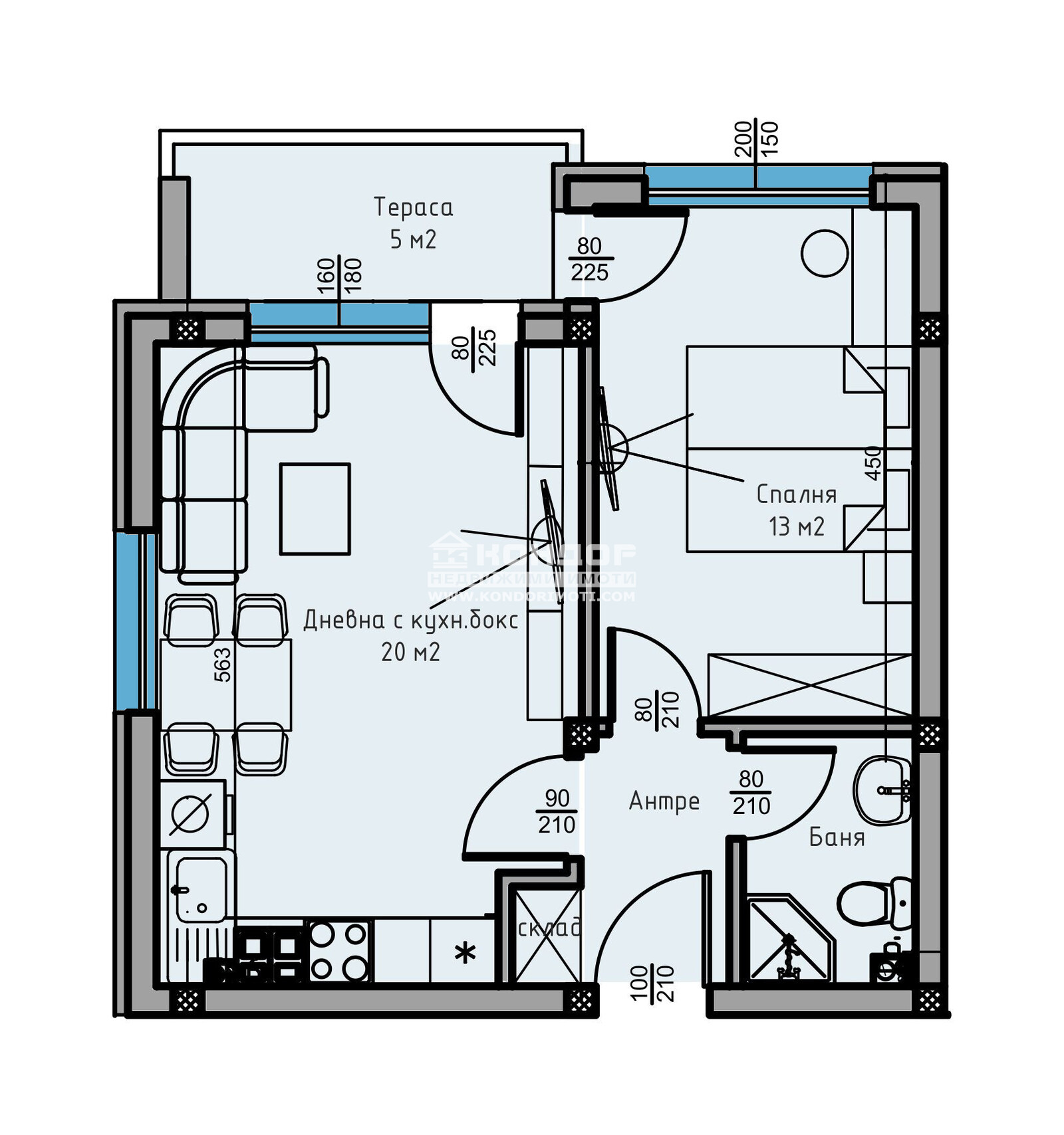 Оферта 63267: Фиксирани Цени - без опция за промяна по време на строителството !!! Сега имате възможността да си закупите функционален 2-стаен апартамент с югозападно изложение в малка новоизграждаща се луксозна сграда, проектирана така, че да създаде максимален комфорт и уют с изключително нисък процент общи части - 13.00 %. Страхотна Локация в един от най-бързо развиващите се райони с нискоетажно застрояване на тихо и спокойно място в близост до всички необходими комуникации. Жилището се състои от слънчева дневна с трапезария и кухненски бокс, една самостоятелна спалня - 13.20 кв.м., баня с тоалетна, входно антре със склад, подходящ за перално помещение и една разкошна тераса, обща и за двете стаи. Обектът се строи от фирма с доказан опит и множество завършени проекти, осъществени с висококачествени материали и съвременни технологии, по европейски стандарти, шесткамерна PVC дограма, червена Австрийска Тухла, масивна Блиндирана входна врата с 4-странно заключване, сензорно осветление, хидравлични асансьори с огледална кабина. Свободни Паркоместа в двора на цени от 8000 евро!!! Възможност за закупуване чрез Банков Кредит или на разсрочено плащане в рамките на строителството !!! ЧУДЕСНА ИНВЕСТИЦИЯ! Възползвайте се от възможността да живеете в малка бутикова сграда!!! Приложените изображения са от готови сгради на строителната компания!ВИЖТЕ ОЩЕ ИЗГОДНИ ОФЕРТИ НА https://www.kondorimoti.com/ С ЕЖЕДНЕВНА АКТУАЛИЗАЦИЯ!