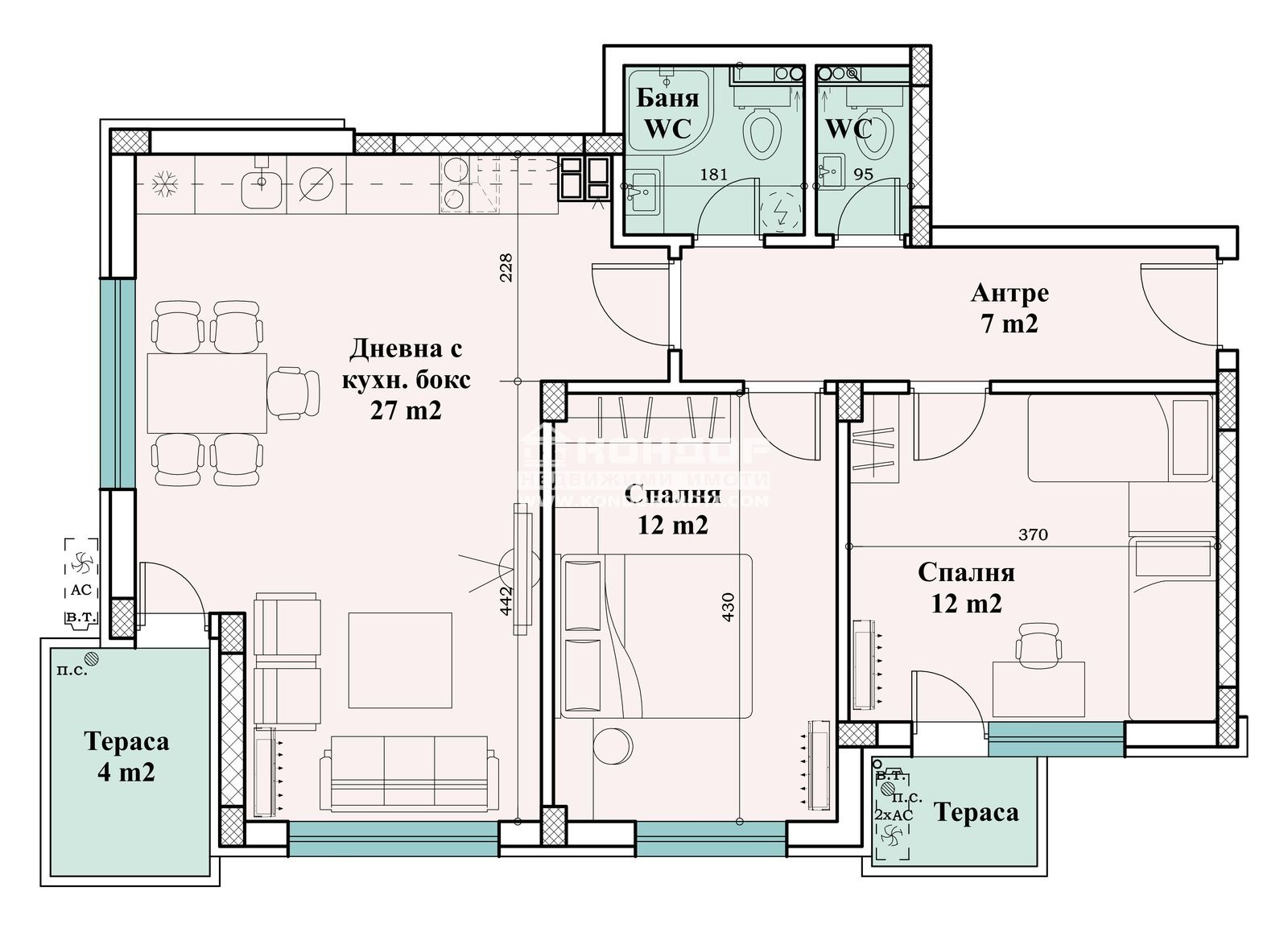 Оферта 58179: ПАРКОМЯСТО В ЦЕНАТА!!! Топ Оферта !!! Имате възможността да си закупите функционален - тристаен апартамент в новоизградена малка и луксозна сграда - тип фамилна къща, проектирана така, че да създаде максимален комфорт и уют с изключително нисък процент общи части - 9 % . Сградата се намира на тихо и спокойно място в близост до всички необходими комуникации. Жилището се състои от югоизточна дневна с трапезария и кухненски бокс - 27 м2, две самостоятелни спални, баня с тоалетна, втора тоалетна, широко входно антре и две тераси. Към имота има прилежаща изба!!! Обектът е построен от фирма с доказан опит и качествено строителство. Изпълнението се осъществява с висококачествени материали и съвременни технологии, по европейски стандарт, петкамерна PVC дограма, червена Австрийска Тухла, масивна Блиндирана входна врата с 4-странно заключване, сензорно осветление, хидравлични асансьори с огледална кабина. Възможност за закупуване чрез Банков Кредит!!! ЧУДЕСНА ИНВЕСТИЦИЯ предвид качеството на строителство, което може да видите на снимките в галерия. Възползвайте се от възможността да живеете в малка бутикова сграда!!!ВИЖТЕ ОЩЕ ИЗГОДНИ ОФЕРТИ НА https://www.kondorimoti.com/ С ЕЖЕДНЕВНА АКТУАЛИЗАЦИЯ!