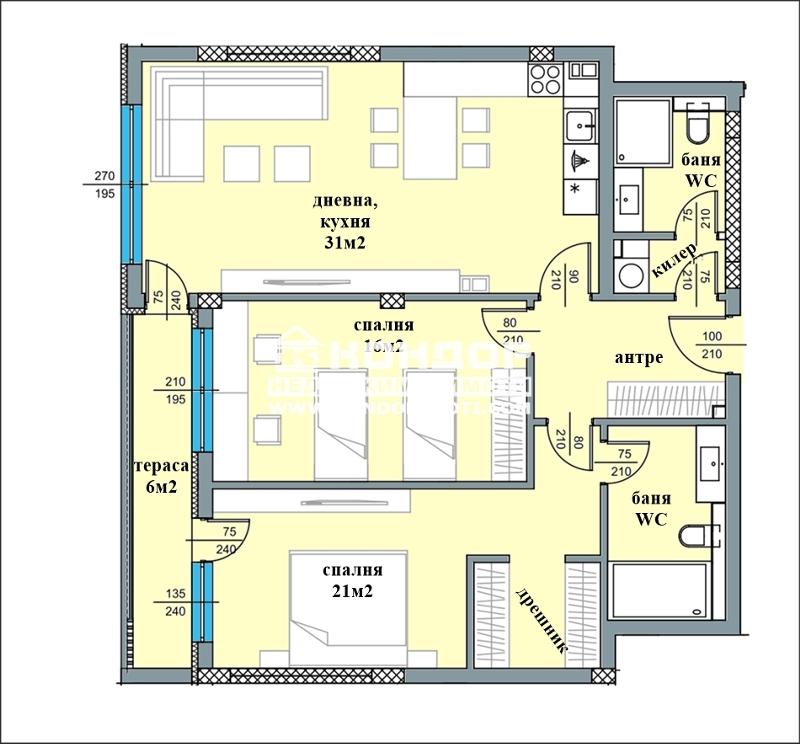 Оферта 59783: ГОТОВА ЛУСКОЗНА СГРАДА С АКТ 16! Предлагаме Ви възможността да си закупите тристайно жилище в нов модерен комплекс, разположен в един от най-предпочитаните напоследък райони за живеене - парк Отдих и Култура, проектиран с концепцията да създаде максимален комфорт на живеене, съчетаващ високо качество, страхотна визия, стил и архитектура, голям вътрешен озеленен двор с детски площадки и места за отдих и релакс , както и много допълнителни екстри! Функционален 3-стаен апартамент с перфектно разпределение, състоящ се от просторна дневна-31кв.м. с трапезария и светъл кухненски бокс, две самостоятелни спални - родителска 21кв.м. с дрешник и собствен санитарен възел и детска 16кв.м., баня с тоалетна, килер, широко входно антре и една тераса. Сградата е изпълнена с висококачествени материали и съвременни технологии по европейски стандарт, шесткамерна PVC дограма, масивна блиндирана входна врата с 4-странно заключване, прекарани климатични инсталации , сензорно осветление, хидравлични асансьори с огледална кабина. Намира в един от най-зелените райони с перфектна локация, с обширна паркова среда, Мол Пловдив и обновения спортен комплекс на Гребна База правят имота особено подходящ, както за живеене, така и за отдаване под наем. Възможност за закупуване на ПОДЗЕМНИ ПАРКОМЕСТА И ПАРТЕРНИ ГАРАЖ! Жилището може да бъде финансира от всички водещи банки, което дава възможност за банков кредит с добри условия.