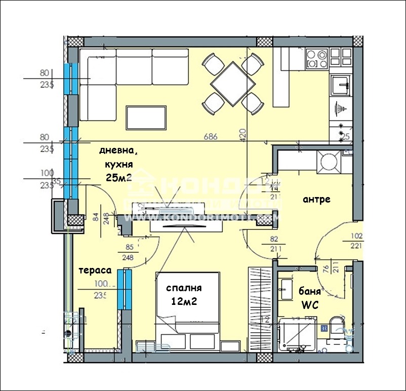 Оферта 52537: ГОТОВА СГРАДА!!! Предлагаме Ви чудесен функционален двустаен апартамент с перфектно разпределение в нова модерна сграда със собствен стил с изчистена визия, проектирана така, че да създаде максимален комфорт и уют за живеене. Нискоетажно жилищно строителство, състоящо се от три секции, в съответна близост до новоизграден парк, спортни площадки и места за отдих и почивка. Жилището се състои от дневна с кухненски бокс и трапезария - 25кв.м., една самостоятелна непреходна спалня - 12кв.м., входно антре, баня с тоалетна и една тераса, обща за двете стаи. Към апартамента има прилежаща изба, която се закупува допълнително (между 4 и 8 кв.м.). Сградата привлича вниманието със своята локация, разположена в близост до Гребна база и парк Отдих и култура, обособили се като едни от най-развиващите се и предпочитани райони за живеене в града. Изпълнението е осъществено с висококачествени материали и съвременни технологии, по европейски стандарт, шесткамерна PVC дограма, блиндирана входна врата с 4-странно заключване, сензорно осветление, хидравлични асансьори с огледална кабина. Проектът включва както жилищна, така и обществено обслужваща дейност, която гарантира удобства от първа необходимост. Възможност за закупуване чрез Банков кредит с изключително изгодни условия за клиенти на агенция 'Кондор'! СВОБОДНИ ПОДЗЕМНИ ГАРАЖИ и Паркоместа!