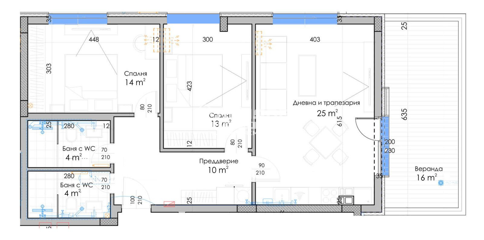 Оферта 58051: Уникална новопостроена бутикова сграда в най-зелената зона на града - Парк отдих и култура. Предлагаме Ви възможността да закупите просторно 3-стайно жилище, състоящо се от югозападна дневна 25 кв.м. с кухненски бокс и трапезария, две самостоятелни спални 13 и 14 кв.м., две бани с тоалетна, широко входно антре с място за гардероб и веранда 16 кв.м. Това, което отличава сградата е ниското застрояване - три етажни входове и партерни жилища с веранди. Концепцията на която се залага, е да се задоволят нуждите на всяко семейство с просторни стаи, правилни форми, множество зелени площи за детски площадки и зони за отдих. Локацията на имота позволява на новите собственици да отдъхнат в спокойна среда след забързания работен ден. Изпълнението е осъществено с висококачествени материали и според съвременни технологии по европейски стандарти -петкамерна PVC дограма, блиндирана входна врата с 4-странно заключване, иноксови парапети, декоративни фасадни мазилки и сензорно осветление. Удобна локация в близост до МОЛ Пловдив, озеленена и обширна паркова среда, спортен комплекс Гребна база, има бърз достъп до Центъра на града. Свободни подземни паркоместа! По желание на клиентите може да се закупува и чрез банков креди на преференциални условия от водещи банки за клиенти на агенцията, разсрочено плащане в рамките на строителството.