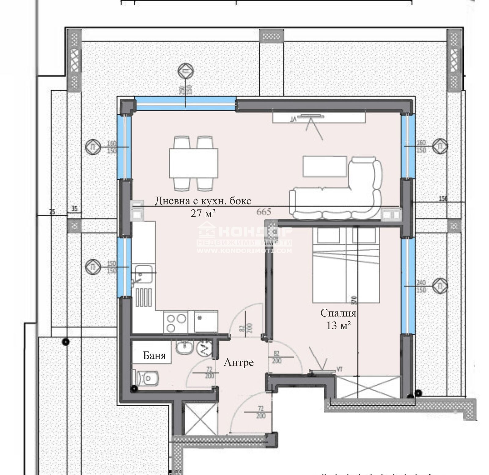 Оферта 60553: ГОТОВА СГРАДА!!! Имате възможността да си закупите функционален 2-стаен апартамент в малка, нвоизградена луксозна сграда с Акт 16, проектирана така, че да създаде максимален комфорт и уют. Сградата се намира в един от най-бързо развиващите се райони с нискоетажно застрояване на тихо и спокойно място в близост до всички необходими комуникации и същевременно на няколко минути от центъра на града . Жилището се състои от светла и просторна дневна -27кв.м. с трапезария и кухненски бокс, една непреходна спалня-13кв.м., баня с тоалетна, входно антре и тераса, която обхваща целия апартамент. Обектът е построен от фирма с доказан опит и луксозно изпълнение на своите сгради, което се осъществява с висококачествени материали и съвременни технологии, по европейски стандарти, шесткамерна PVC дограма, червена Австрийска Тухла, масивна Блиндирана входна врата с 4-странно заключване, сензорно осветление, хидравлични асансьори с огледална кабина. Свободни Паркоместа в двора!!! ЧУДЕСНА ИНВЕСТИЦИЯ!!! Възползвайте се от възможността да живеете в малка бутикова сграда !!! ВИЖТЕ ОЩЕ ИЗГОДНИ ОФЕРТИ НА https://www.kondorimoti.com/ С ЕЖЕДНЕВНА АКТУАЛИЗАЦИЯ!