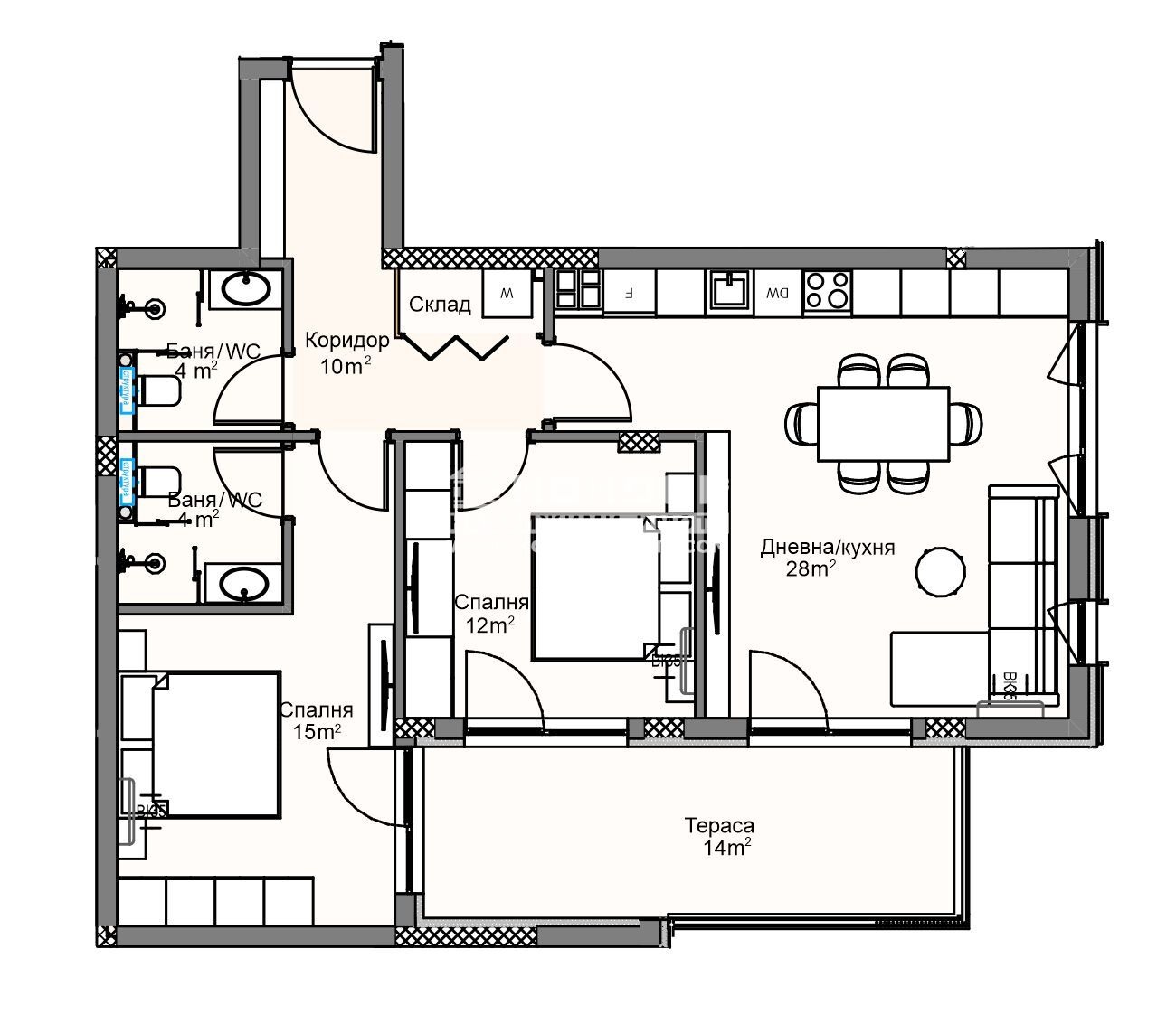 Оферта 64698: Представяме на Вашето внимание един новоизграден проект в комплекс от затворен тип в град Пловдив. Строителната компанията акцентира върху комфорта, безопасността и сигурността в своите комплекси, естетичното оформление на пространството около сградите и отлично развитата инфраструктура, сред която умело да бъдат съчетавани работа, развлечения, спорт и почивка. Апартаментът, които ви предлагаме се състои от дневна с кухненска част 28кв.м., две самостоятелни спални: детска 12кв.м. и родителска 15кв.м. със собствена баня, втора баня с тоалетна, широко входно антре с място за перално и една тераса, обща за трите стаи. Най-новият проект на компанията е луксозен комплекс, който е разположен в северната част на град Пловдив, обграден от природа, която дава неподправено усещане за простор и спокойствие, с невероятна гледка към Родопите. Комплексът се базира на концепцията за извънградски комплекс, където в голям терен се разполагат по-малки жилищни сгради, които предлагат спокойствието в покрайнините на града. В сградите има жилища с една, две и три спални, единични и двойни подземни и надземни гаражи, както и външни паркоместа. На входа на всяка сграда е поставена система за индивидуален чип, високоскоростни асансьори, а вътрешнопарковото пространство е решено в богата висока и ниска растителност, заобиколена от живописни зеленина, детска площадка и площ за спорт. Благодарение на ниската си плътност на застрояване, архитектурния си дизайн и добрата ориентация, комплексът е предпочитано място, което осигурява на обитателите си спокоен и качествен живот. Осигурено Банково Финансиране с изключително Изгодни условия за клиенти на Агенцията от Водещи Банки !!!
