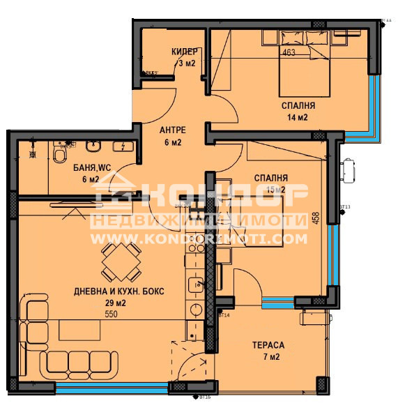 Оферта 61575: Представяме Ви новоизграждаща се малка и луксозна сграда от типа на Фамилна къща, проектирана така, че да създаде максимален комфорт и уют. Сградата се намира на тихо и спокойно място в близост до всички необходими комуникации. Тристаен апартамент с изложение юг/изток - състои се от дневна с трапезария и кухненски бокс 29 кв.м. с излаз на тераса 7 кв.м., две прекрасни непреходни спални с излаз на тераса: родителска 15кв.м. и детска 14 кв.м., баня с тоалетна 6кв.м,, складово помещение и входно антре. Обектът се строи от фирма с доказан опит, като разполагаме с готови сгради и можем да Ви покажем качеството на изпълнение, което се осъществява с висококачествени материали и съвременни технологии, по европейски стандарт, петкамерна PVC дограма, червена Австрийска Тухла, масивна Блиндирана входна врата с 4-странно заключване, сензорно осветление, хидравлични асансьори с огледална кабина. Свободни подземни Гаражи и паркоместа в двора!!! Възможност за Закупуване чрез Банков Кредит!!! ЧУДЕСНА ИНВЕСТИЦИЯ предвид качеството на строителство, което може да видите на снимките в Галерия, взети от други готови сгради на строителя. Възползвайте се от възможността да живеете в малка бутикова сграда!!!ВИЖТЕ ОЩЕ ИЗГОДНИ ОФЕРТИ НА https://www.kondorimoti.com/ С ЕЖЕДНЕВНА АКТУАЛИЗАЦИЯ!