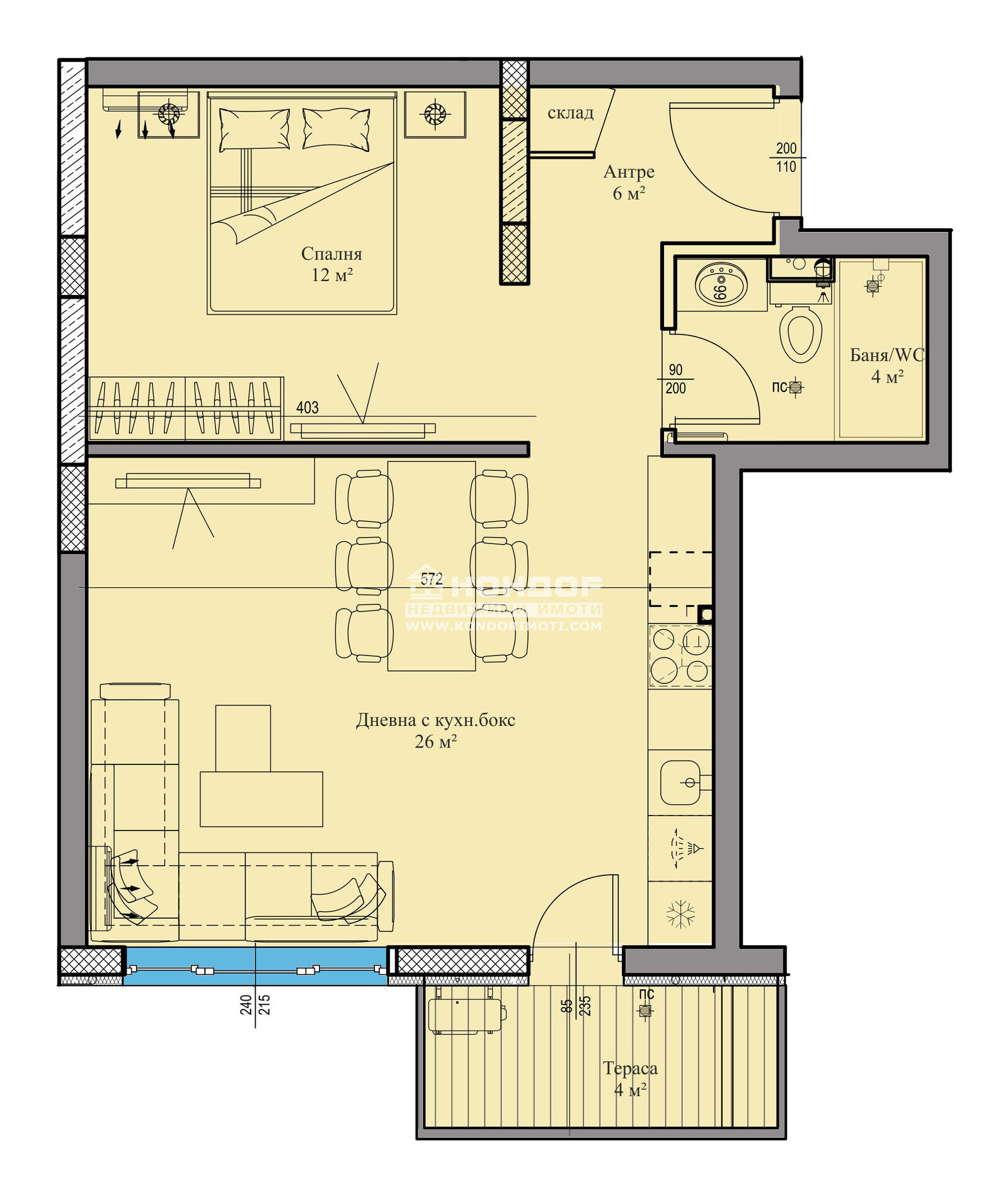 Оферта 63574: Имаме Удоволствието да ви Предложим Функционален Двустаен Апартамент в луксозна сграда, отличаваща се с модерна и съвременна архитектура в един от най-предпочитаните за живеене райони с отлична локация в близост до Гимназия Васил Коларов и Автогара Родопи. Проектът е с нисък процент общи части, което дава възможност на клиентите да получат повече реална площ !!! Жилището се състои от просторна ъглова дневна с трапезария и светъл кухненски бокс /26 кв.м./, една спалня 12.29кв.м., баня с WC, склад, входно антре и еда тераса. Сградата се изпълнява от реномирана Строителна Компания, която разполага с множество готови обекти, утвърдила се като една от водещите и Коректни Фирми в Града. Апартаментите ще бъдат завършени според всички изисквания за съвременно строителство - блиндирана врата, 6-камерна дограма, МДФ-вътрешни врати. Луксозни общи части, хидро и топло изолация, хидравличен асансьор, гранитено стълбище, алуминиев парапет. Свободни Подземни Гаражи и външни Паркоместа . Сградата се намира на приятно и спокойно място в близост до училища, детска градина и удобен транспорт - ОТЛИЧНА ИНВЕСТИЦИЯ !!! Възможност за изплащане на разсрочено плащане.