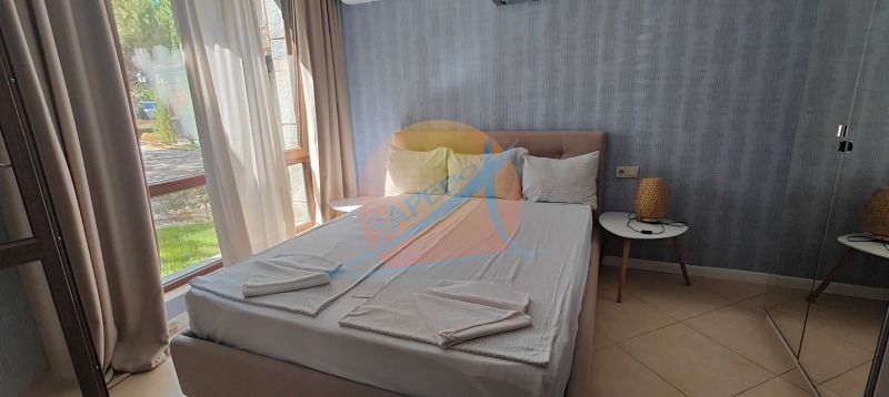 Oasis Beach Club, Lozenets.Обзаведено студио на партерен етаж, в Оазис Бийч Клуб, Лозенец. Апартаментът е разположен в секция С, на партерен етаж, с обща площ 51 кв.м. Състои се от дневна с кухненски бокс, отделена спална зона, баня с тоалетна и веранда. Продава се стилно обзаведен и оборудван, готов за ползване. Такса поддръжка: 20,5 на кв.м. с ДДС.