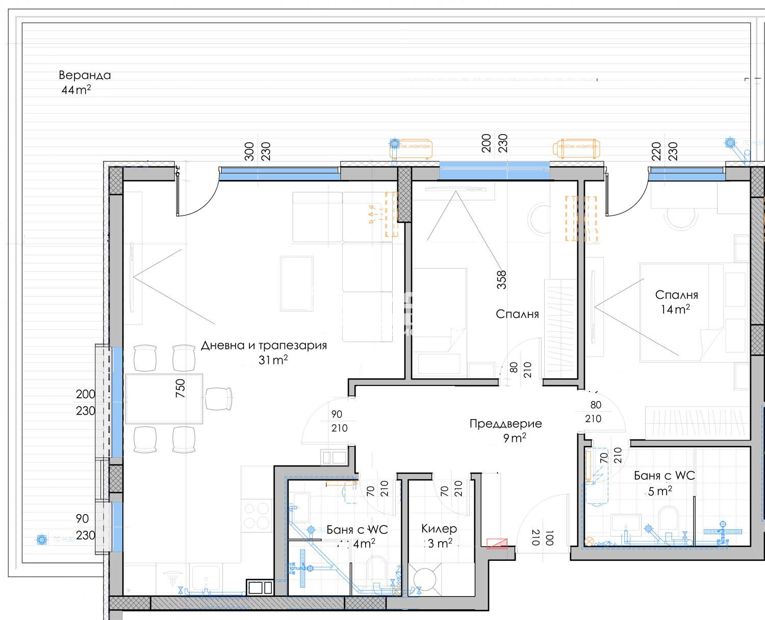 Оферта 62328:Уникална новопостроена бутикова сграда в най-зелената зона на града - Парк отдих и култура. Предлагаме Ви възможността да закупите просторно 3-стайно жилище, състоящо се от югоизточна дневна 31 кв.м. с кухненски бокс и трапезария, две самостоятелни спални: родителска 14кв.м. със 44кв.м. Към апартамента има прилежащо избено помещение включено в цената. Това, което отличава сградата е ниското застрояване - три етажни входове и партерни жилища с веранди. Концепцията на която се залага, е да се задоволят нуждите на всяко семейство с просторни стаи, правилни форми, множество зелени площи за детски площадки и зони за отдих. Локацията на имота позволява на новите собственици да отдъхнат в спокойна среда след забързания работен ден. Изпълнението е осъществено с висококачествени материали и според съвременни технологии по европейски стандарти -петкамерна PVC дограма, блиндирана входна врата с 4-странно заключване, иноксови парапети, декоративни фасадни мазилки и сензорно осветление. Удобна локация в близост до МОЛ Пловдив, озеленена и обширна паркова среда, спортен комплекс Гребна база, има бърз достъп до Центъра на града. Свободни подземни паркоместа! По желание на клиентите може да се закупува и чрез банков креди на преференциални условия от водещи банки за клиенти на агенцията, разсрочено плащане в рамките на строителството. Приложените снимки са от готова сграда на строителната компания!