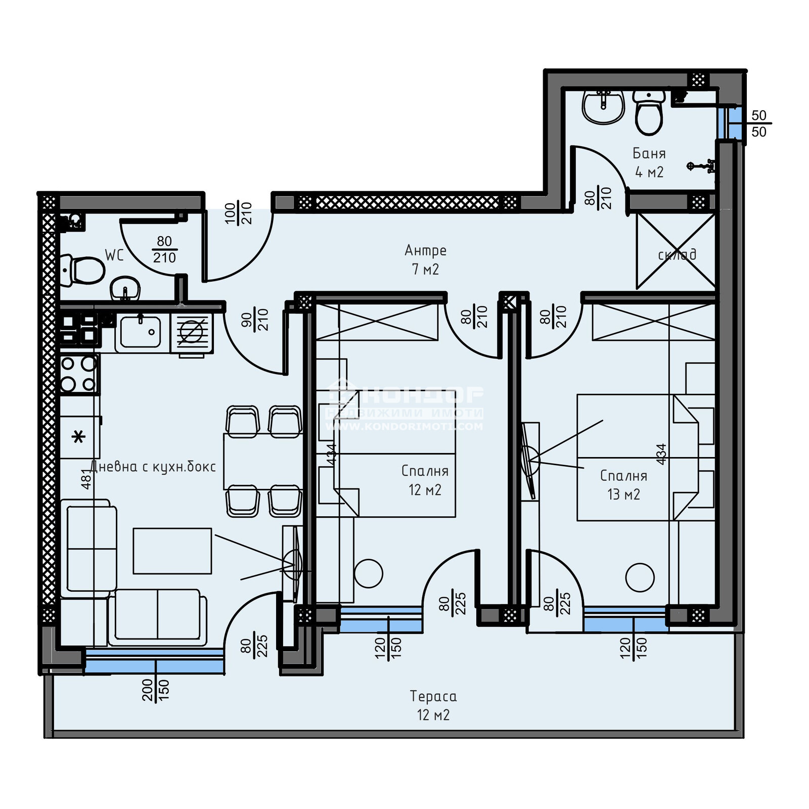 Оферта 63276: Фиксирани Цени - без опция за промяна по време на строителството !!! Сега имате възможността да си закупите функционален 3-стаен апартамент С ЮГОИЗТОЧНО ИЗЛОЖЕНИЕ в малка новоизграждаща се луксозна сграда, проектирана така, че да създаде максимален комфорт и уют с изключително нисък процент общи части - 13.00 %. Страхотна Локация в един от най-бързо развиващите се райони с нискоетажно застрояване на тихо и спокойно място в близост до всички необходими комуникации. Жилището се състои от слънчева дневна с трапезария и кухненски бокс, две самостоятелни спални 12.30 и 12.50кв.м., баня с тоалетна, втора тоалетна, входно антре със склад, подходящ за перално помещение и една панорамна тераса, обща и за всички стаи. Обектът се строи от фирма с доказан опит и множество завършени проекти, осъществени с висококачествени материали и съвременни технологии, по европейски стандарти, шесткамерна PVC дограма, червена Австрийска Тухла, масивна Блиндирана входна врата с 4-странно заключване, сензорно осветление, хидравлични асансьори с огледална кабина. Свободни Паркоместа в двора на цени от 8000 евро!!! Възможност за закупуване чрез Банков Кредит или на разсрочено плащане в рамките на строителството !!! ЧУДЕСНА ИНВЕСТИЦИЯ! Възползвайте се от възможността да живеете в малка бутикова сграда.