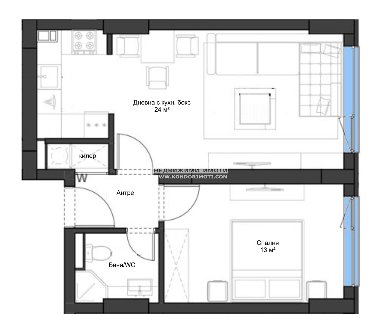 Оферта 62008: Нова луксозна сграда, намираща се на чудесно място в близост до централната част на квартала, съчетаваща в себе си модерната архитектура с високо качество на строителство и усещането за уют и спокойствие. Намира се в най-атрактивния и предпочитан за живеене и инвестиция квартал на Пловдив Кючук Париж, с отлична локация, в близост до училища, детски градини и всички необходими комуникации за нуждите на модерния човек. Жилището, което ви предлагаме е с изцяло ИЗТОЧНО изложение и се състои от дневна 24кв.м. с трапезария и кухненски бокс, една самостоятелна спалня 13кв.м., баня с тоалетна, склад и входно антре. Към апартамента има прилежаща изба включена в цената. Степен на завършеност: стени и тавани - шпакловка, под - циментова замазка, балкони - гранитогрес, мокри помещения-замазка и мазилка, парапети по балкони - стъклени, дограма - PVC с многокамерен профил, врати - външна блиндирана, хидравличен асансьор, луксозни общи части. Към момента разполагаме с различни свободни по големина жилища с функционални разпределения и избор на етаж. Свободни партерни и подземни паркоместа на цени от 8000 до 11 000 Евро!!! Възможност за разсрочено плащане в рамките на строителството или закупуване чрез Банков Кредит.ВИЖТЕ ОЩЕ ИЗГОДНИ ОФЕРТИ НА https://www.kondorimoti.com/ С ЕЖЕДНЕВНА АКТУАЛИЗАЦИЯ!