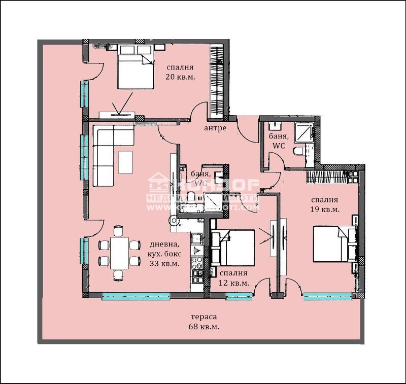 Оферта 54020: ГОТОВА СГРАДА!!! Предлагаме Ви чудесен функционален двустаен апартамент с перфектно разпределение в нова модерна сграда със собствен стил с изчистена визия, проектирана така, че да създаде максимален комфорт и уют за живеене. Нискоетажно жилищно строителство, състоящо се от три секции, в съответна близост до новоизграден парк, спортни площадки и места за отдих и почивка. Жилището се състои от просторна дневна - 33кв.м., обособена на кътове, три самостоятелни непреходни спални - 20 кв.м., 19 кв.м. и 12 кв.м., входно антре, две бани с тоалетни и панромна тераса - 68 кв.м. Към апартамента има прилежаща изба, която се закупува допълнително (между 4 и 8кв.м.) Сградата привлича вниманието със своята локация, разположена в близост до Гребна база и парк Отдих и култура, обособили се като едни от най-развиващите се и предпочитани райони за живеене в града.Изпълнението е осъществено с висококачествени материали и съвременни технологии, по европейски стандарт, шесткамерна PVC дограма, блиндирана входна врата с 4-странно заключване, сензорно осветление, хидравлични асансьори с огледална кабина. Проектът включва както жилищна, така и обществено обслужваща дейност, която гарантира удобства от първа необходимост. Възможност за закупуване чрез Банков кредит с изключително изгодни условия за клиенти на агенция 'Кондор'! СВОБОДНИ ПОДЗЕМНИ ГАРАЖИ и Паркоместа!