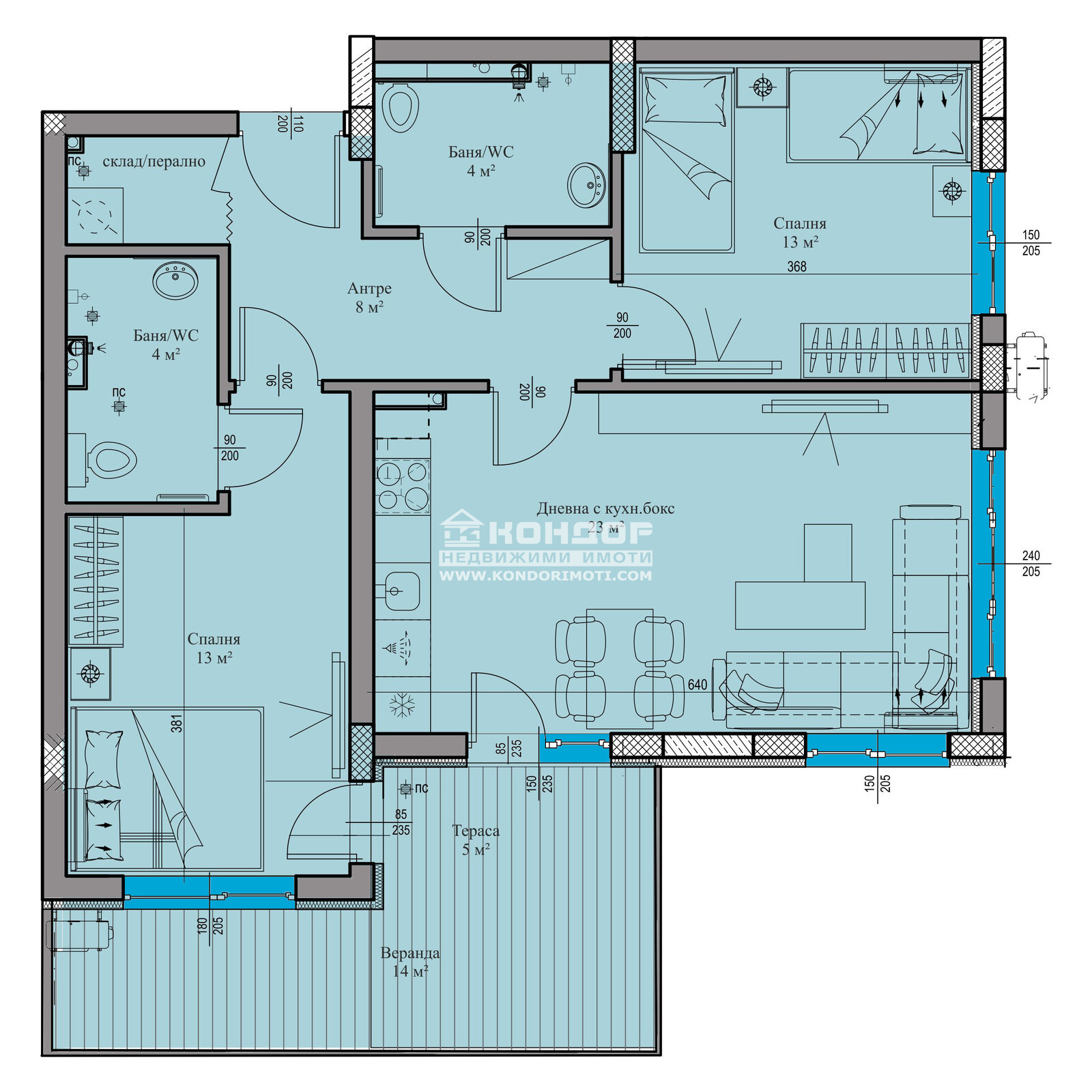 Оферта 63569: Имаме Удоволствието да ви Предложим Тристаен Апартамент югозападно изложение в луксозна сграда, отличаваща се с модерна и съвременна архитектура в един от най-предпочитаните за живеене райони с отлична локация в близост до Гимназия Васил Коларов и Автогара Родопи. Проектът е с нисък процент общи части, което дава възможност на клиентите да получат повече реална площ !!! Жилището се състои от дневна 23кв.м. с трапезария и светъл кухненски бокс, две самостоятелни спални: детска 13 кв.м, и прекрасна родителска 13кв.м. със самостоятелен санитарен възел, втора баня с WC, входно антре с място за гардероб, самостоятелен килер/перално и веранда. Сградата се изпълнява от реномирана Строителна Компания, която разполага с множество готови обекти, утвърдила се като една от водещите и Коректни Фирми в Града. Апартаментите ще бъдат завършени според всички изисквания за съвременно строителство - блиндирана врата, 6-камерна дограма, МДФ-вътрешни врати. Луксозни общи части, хидро и топло изолация, хидравличен асансьор, гранитено стълбище, алуминиев парапет. Свободни Подземни Гаражи и външни Паркоместа . Сградата се намира на приятно и спокойно място в близост до училища, детска градина и удобен транспорт - ОТЛИЧНА ИНВЕСТИЦИЯ !!! Възможност за изплащане на разсрочено плащане.