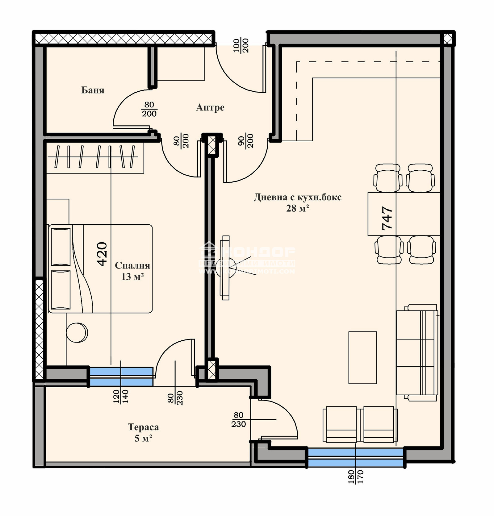 Оферта 61555: МАЛКА БУТИКОВА СГРАДА ОТ 9 АПАРТАМЕНТА -ТОП ЛОКАЦИЯ! Предлагаме Ви функционални жилища в кооперация с ограничен брой апартаменти - предимство, търсено от множество клиенти на пазара на фона на масовото предлагане на имоти в огромни комплекси - така че не изпускайте своя шанс да закупите имот точно тук! Двустаен апартамент с правилни форми - просторна дневна 28 кв.м. с кухненски бокс и трапезария с излаз на общ балкон, една самостоятелна спалня-13 кв.м., санитарен възел и входно антре, завършват облика на това жилище. Кооперацията се изпълнява от водеща строителна фирма с множество готови сгради, построени през годините. Степен на завършеност: стълбище - гранит, жилища -шпакловка, замазка, PVC цветна немска многокамерна дограма, хидравличен асансьор, иноксови парапети и др. Свободни гаражи и паркоместа. Разсрочено плащане в рамките на строителството.ВИЖТЕ ОЩЕ ИЗГОДНИ ОФЕРТИ НА https://www.kondorimoti.com/ С ЕЖЕДНЕВНА АКТУАЛИЗАЦИЯ!