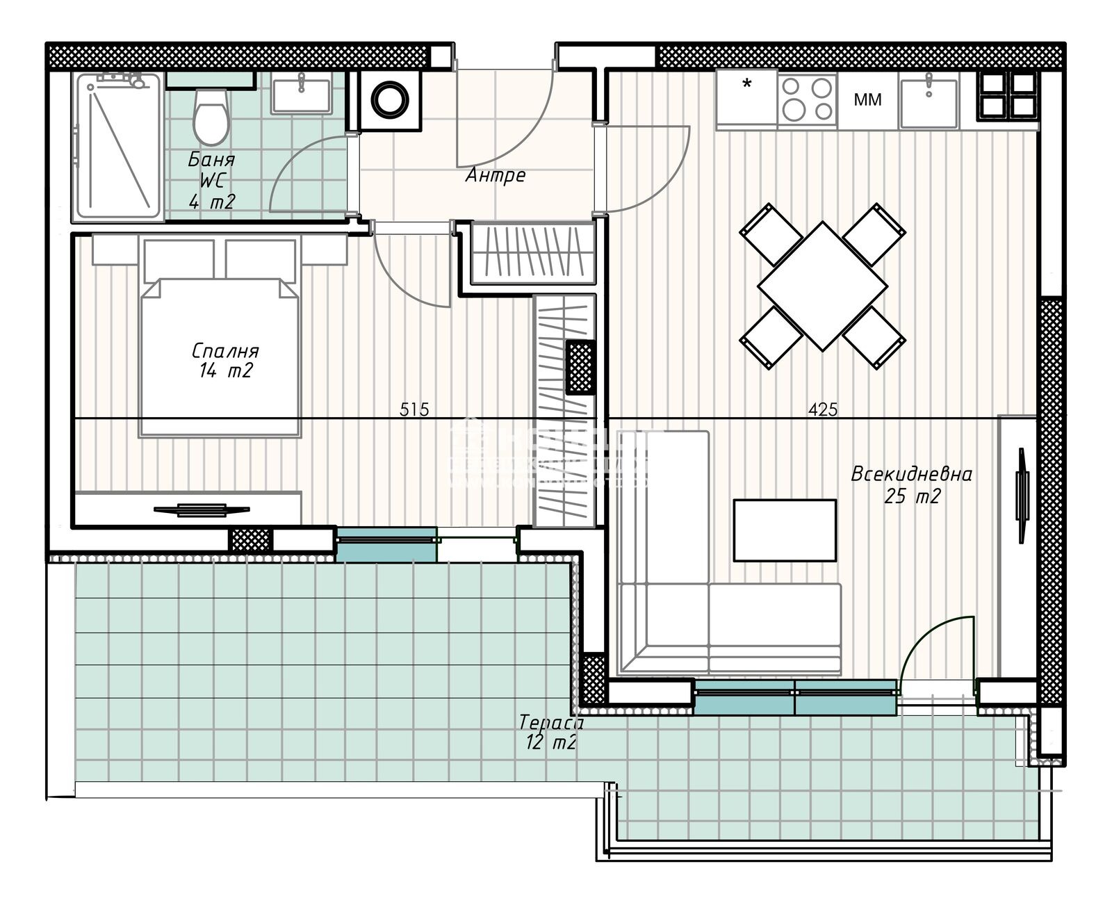 Оферта 63667: ГОТОВА СГРАДА!!! Предлагаме ви възможността да закупите просторни и светли апартаменти, намиращи се в сграда със съвременна архитектура с иновативна визия, съчетаваща модерни технологии с качествени материали на строителство, позиционирана на много тихо и спокойно място в Кършияка с невероятна зеленина!!! Апартаментите са с отлично разпределение !!! Двустаен апартамент, състоящ се от дневна с трапезария и кухненски бокс - 25кв.м., една самостоятелна спалня - 14кв.м., баня с тоалетна, входно антре и една панорамна тераса 12кв.м., обща и за двете стаи. Към апартамента има прилежащо избено помещение включено в цената!!! Сградата е построена от реномирана фирма с множество готови сгради в града, като можем да ви покажем качеството на изпълнение и материалите които се използват. Жилищата са завършени според всички изисквания за качествено строителство, хидравличен асансьор, блиндирани входни врати, висок клас ПВЦ - дограма. Свободни Гаражи на партерно ниво и външни Паркоместа. Разсрочено плащане в рамките на строителството. СТРАХОТНА ИНВЕСТИЦИЯ!