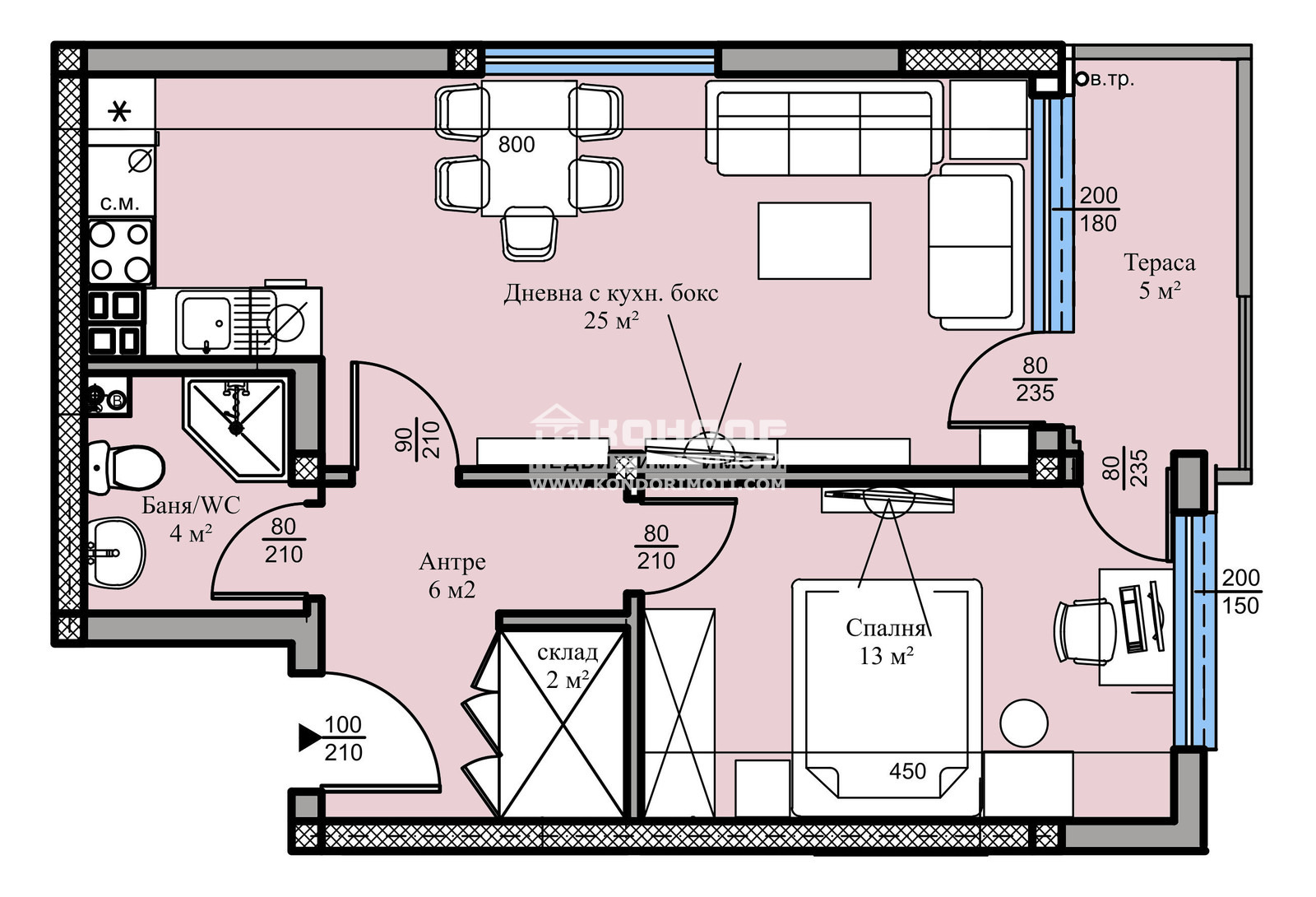 Оферта 61548: Фиксирани Цени - без опция за Промяна по време на Строителството !!! Без Комисион от Купувача !!! Предлагаме Ви възможността да си закупите двустаен апартамент в нискоетажана жилищна сграда в един от най-предпочитаните напоследък райони за живеене, намираща се в близост до Гребна База, училища, детски градини, удобен транспорт и големи хранителни хипермаркети. Жилището се състои от светла ъглова дневна 25кв.м. с трапезария и кухненски бокс, една самостоятелна спалня 13кв.м., баня с тоалетна, склад, входно антре и една тераса, обща за двете стаи. Сградата е проектирана с нисък процент общи части, което дава повече реална и използваема площ на стаите и създава максимален комфорт на своите ползватели. Перспективна ИНВЕСТИЦИЯ ЗА ОТДАВАНЕ ПОД НАЕМ!!! Изпълнението се осъществява от фирма с доказан опит и множество построени сгради, като се използват висококачествени материали и съвременни технологии, по европейски стандарт, шест камерна PVC дограма, блиндирана входна врата с 4-странно заключване, сензорно осветление, хидравлични асансьори с огледална кабина. Свободни паркоместа и партерни гаражи!!! Приложените снимки са от друга готова сграда на строителната фирма. Възможност за закупуване на лизинг или чрез банков кредит!!!ВИЖТЕ ОЩЕ ИЗГОДНИ ОФЕРТИ НА https://www.kondorimoti.com/ С ЕЖЕДНЕВНА АКТУАЛИЗАЦИЯ!