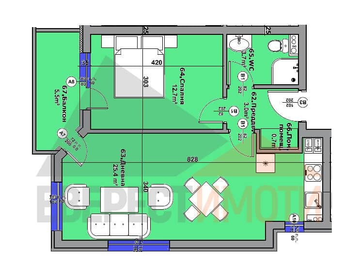 Оферта: 2319. ПРЕДСТОЯЩАТА малка и бутикова сграда MIRAGE, едно ново бижу, което ще се намира на чудесно място в района, обединяваща спокойствие, сигурност, лукс и чудесно местоположение. Предлагаме Ви чудесен ДВУСТАЕН АПАРТАМЕНТ с възможност за закупуване на ПАРКОМЯСТО във вътрешен двор или ГАРАЖ. СГРАДАТА е с модерна архитектура, с визия прилягаща за квартала. Апартаментът се състои от голяма дневна с трапезария и кухненски бокс, една спалня, баня с тоалетна, входно антре, склад и една прекрасна тераса. Строителството е прецизно с много високо качество на изпълнение и използвани материали: керамична тухла, немска 5-камерна дограма с мултифункционално стъкло, дизайнерско стълбище/виж галерия/ от естествен камък и облицовка на фасадата, 10 см. външна топлоизолация БАУМИТ, парапети на стълбището и терасите от ковано желязо и алуминий, блиндирани входни врати с тристранно заключване, безшумен асансьор ОРОНА, домофонна система с видеонаблюдение, декоративни елементи по фасадата, LED осветление по общи части и фасада и много други екстри за живущите. Жилищата се издават на шпакловка и замазка с изградена ел. инсталация с контакти и ключове, ВиК на тапа. Мястото е тихо и много спокойно, като в близост има зеленчуков пазар, детска градина, училище, болница и автобусни спирки. ЧУДЕСЕН за инвестиция и живене поради близостта си до големи университети. Разсрочено плащане в рамките на строителството. Агенция ЕВЕРЕСТ ИМОТИ съдейства за закупуването чрез банков кредит от водещи банки на преференциални условия за клиентите си!!