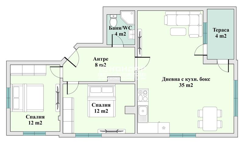Оферта 59996: Имаме удоволствието да ви предложим тристаен апартамент самостоятелен на етаж в новоизградена сграда в близост до Евмолпия и търговски център Гранд !!! Малка бутикова сграда - тип фамилна къща, състояща се само от шест жилища в един от най-предпочитаните райони на централна градска част. Апартаментът се състои от светла и просторна югозападна дневна - 35кв.м. с обособена кухня, трапезарна част и зона за ъглова ниска мебел, две самостоятелни спални по 12кв.м., баня с тоалетна, широко входно антре с място за гардероб и една тераса. Строителството е изпълнено по всички европейски изисквания за качество: под - замазка, стени шпакловка, ВиК до тапа, Ел. инсталация до ключ, пълно окабеляване, масивна входна блиндирана врата. Луксозно завършване на общи части. Проблемът с паркирането е решен с партерни Гаражи и Паркоместа във вътрешния двор. Предпочитан район поради бързия достъп до главната пешеходна улица на града, множеството детски градини, университети, паркови среди и зелени зони, както и бърз излаз на централни възлови булеварди. Разсрочено плащане в рамките на строителството.