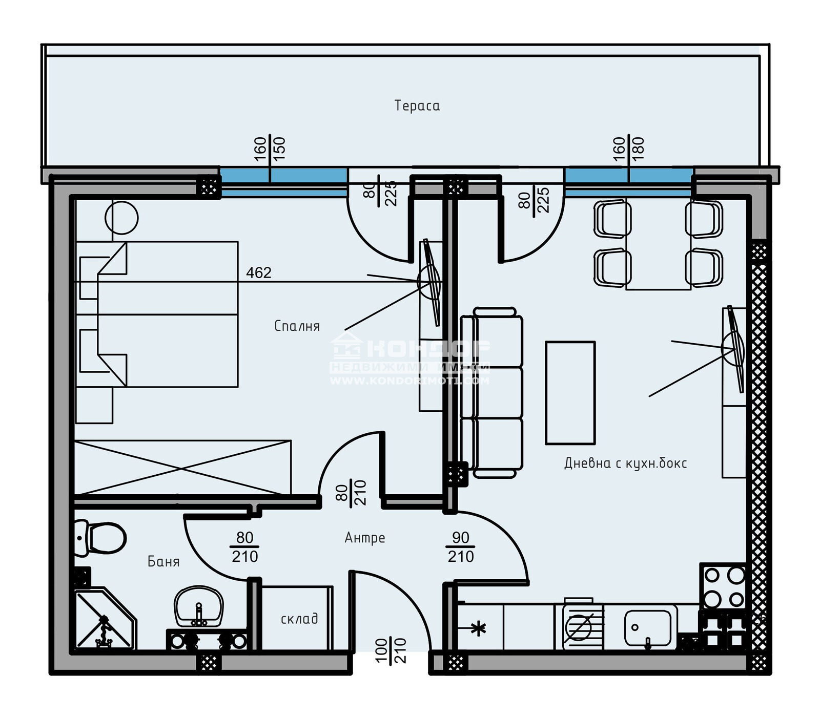 Оферта 63273: Фиксирани Цени - без опция за промяна по време на строителството !!! Сега имате възможността да си закупите функционален 2-стаен апартамент в малка новоизграждаща се луксозна сграда, проектирана така, че да създаде максимален комфорт и уют с изключително нисък процент общи части - 13.00 %. Страхотна Локация в един от най-бързо развиващите се райони с нискоетажно застрояване на тихо и спокойно място в близост до всички необходими комуникации. Жилището се състои от дневна с трапезария и кухненски бокс, една голяма самостоятелна спалня - 18 кв.м., баня с тоалетна, входно антре със склад, подходящ за перално помещение и една панорамна тераса, обща и за двете стаи. Обектът се строи от фирма с доказан опит и множество завършени проекти , осъществени с висококачествени материали и съвременни технологии, по европейски стандарти, шесткамерна PVC дограма, червена Австрийска Тухла, масивна Блиндирана входна врата с 4-странно заключване, сензорно осветление, хидравлични асансьори с огледална кабина. Свободни Паркоместа в двора на цени от 8000 евро!!! Възможност за закупуване чрез Банков Кредит или на разсрочено плащане в рамките на строителството !!! ЧУДЕСНА ИНВЕСТИЦИЯ! Възползвайте се от възможността да живеете в малка бутикова сграда. Приложените изображения са от готови сгради на строителната компания!ВИЖТЕ ОЩЕ ИЗГОДНИ ОФЕРТИ НА https://www.kondorimoti.com/ С ЕЖЕДНЕВНА АКТУАЛИЗАЦИЯ!