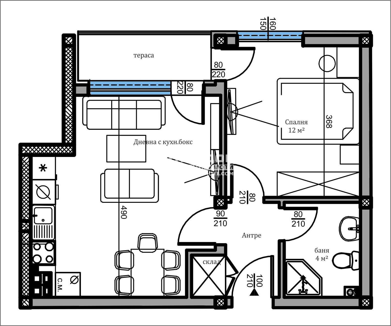 Предлагаме Ви възможността да си закупите двустаен апартамент в нискоетажана жилищна сграда намираща се на тихо и спокойно място в близост до всички необходими комуникации, училища, детски градини, удобен транспорт и големи хранителни хипермаркети. Сградата е проектирана с изключително нисък процент общи части - 10% ,което дава повече реална и използваема площ на стаите и създава максимален комфорт на своите ползватели. Жилището се състои от дневна с кухненски бокс, една самостоятелна спалня 12кв.м., баня с тоалетна, перално, входно антре и една тераса обща за двете стаи. Перспективна ИНВЕСТИЦИЯ ЗА ОТДАВАНЕ ПОД НАЕМ!!! Изпълнението се осъществява с висококачествени материали и съвременни технологии, по европейски стандарт, шест камерна PVC дограма, блиндирана входна врата с 4-странно заключване, сензорно осветление, хидравлични асансьори с огледална кабина. Свободни Паркоместа на цени от 8000 евро и партерни Гаражи !!! Приложените снимки са от друга готова сграда на строителната фирма. Възможност за закупуване на разсрочено плащане в рамките на строителството или чрез Банков Кредит на изключително изгодни условия, договорени за клиенти на Агенция КОНДОР !!!ВИЖТЕ ОЩЕ ИЗГОДНИ ОФЕРТИ НА https://www.kondorimoti.com/ С ЕЖЕДНЕВНА АКТУАЛИЗАЦИЯ!