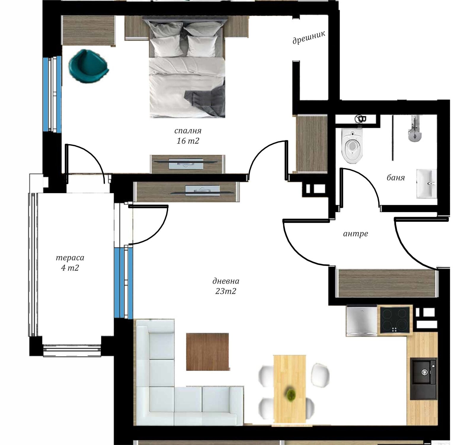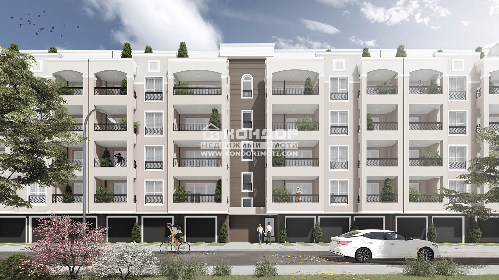 Оферта 62821: Предлагаме на Вашето внимание 2-СТАЕН вътрешен апартамент с изцяло южно изложение в новострояща се луксозна сграда, отличаваща се със съвременна и стилна архитектура. Района, в който се намира, се отличава със спокойна и чиста среда, близост до всички изходни артерии на града, както и прекрасна гледка към Родопите на юг. Просторни и изчистени форми оформят желаното от всеки клиент жилище - състои се от слънчева дневна с трапезария и кухненски с излаз на обща тераса, една спалня с дрешник 16м2, баня с WC и входно антре. Завършването е с висококачествени материали, според всички изисквания за топло и хидро изолация в съвременно строителство - блиндирана врата, 6-камерна дограма, луксозно завършени общи части, хидравличен асансьор, гранитно стълбище. Възможност за закупуване на паркомясто и гараж. Подарете на Вас и Вашето семейството дом, съчетаващ лукс, удобство, усещане за простор и невероятна гледка към Родопите, в който да релаксирате пълноценно след натоварения работен ден. Осигурено банково кредитиране за нашите клиенти на специални условия.