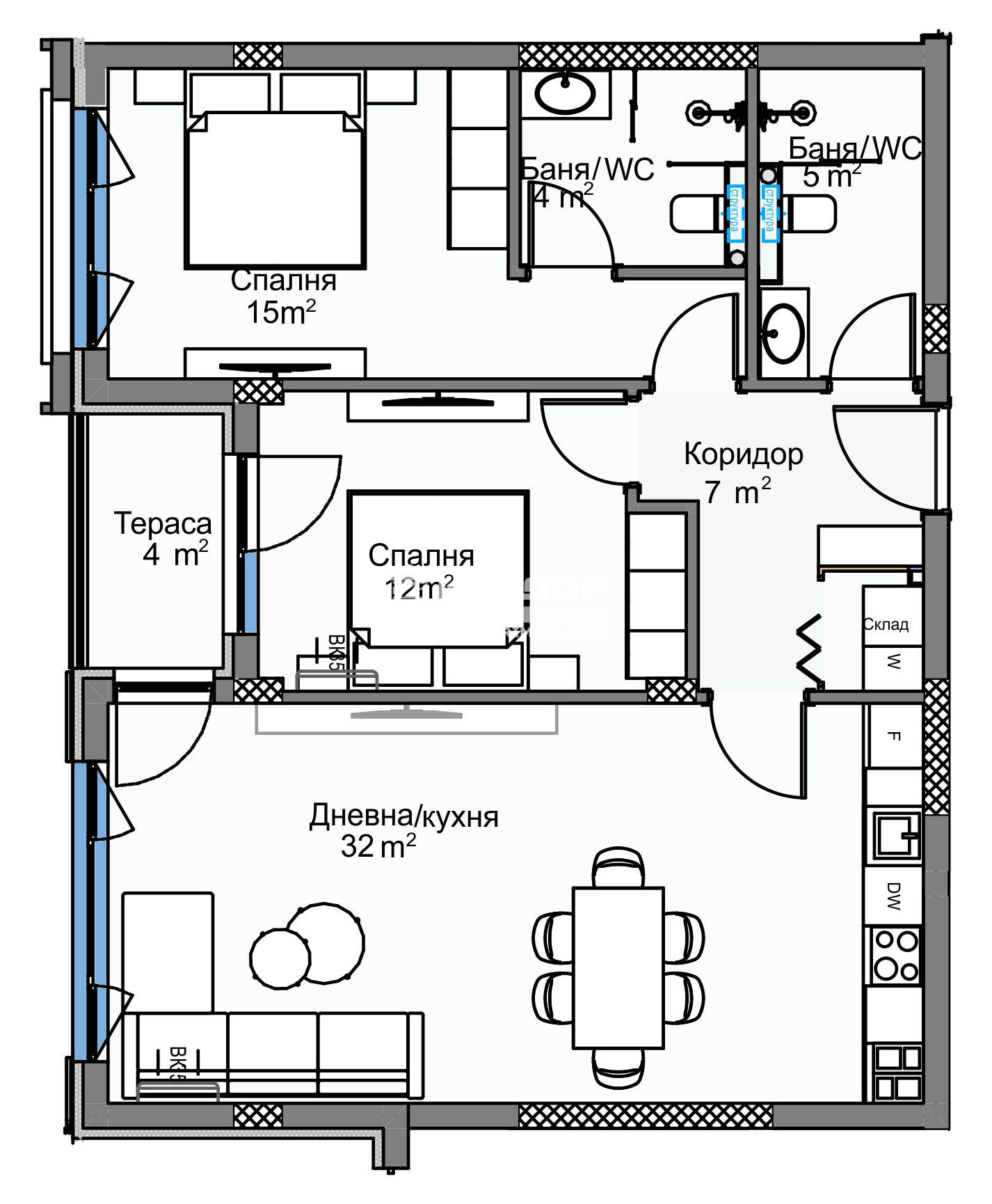 Оферта 64699: Представяме на Вашето внимание един проект на водеща фирма в изграждането на комплекси от затворен тип в град Пловдив. Строителната компанията акцентира върху комфорта, безопасността и сигурността в своите комплекси, естетичното оформление на пространството около сградите и отлично развитата инфраструктура, сред която умело да бъдат съчетавани работа, развлечения, спорт и почивка. Апартаментът, които ви предлагаме се състои от дневна с кухненска част 32кв.м., две самостоятелни спални: детска 12кв.м. и родителска 15кв.м. със собствена баня, втора баня с тоалетна, широко входно антре с място за перално и една тераса. Най-новият проект на компанията е луксозен комплекс, който е разположен в северната част на град Пловдив, обграден от природа, която дава неподправено усещане за простор и спокойствие, с невероятна гледка към Родопите. Комплексът се базира на концепцията за извънградски комплекс, където в голям терен се разполагат по-малки жилищни сгради, които предлагат спокойствието в покрайнините на града. В сградите има жилища с една, две и три спални, единични и двойни подземни и надземни гаражи, както и външни паркоместа. На входа на всяка сграда е поставена система за индивидуален чип, високоскоростни асансьори, а вътрешнопарковото пространство е решено в богата висока и ниска растителност, заобиколена от живописни зеленина, детска площадка и площ за спорт. Благодарение на ниската си плътност на застрояване, архитектурния си дизайн и добрата ориентация, комплексът е предпочитано място, което осигурява на обитателите си спокоен и качествен живот. Осигурено Банково Финансиране с изключително Изгодни условия за клиенти на Агенцията от Водещи Банки !!! Приложените изображения са от готови сгради на строителната компания!ВИЖТЕ ОЩЕ ИЗГОДНИ ОФЕРТИ НА https://www.kondorimoti.com/ С ЕЖЕДНЕВНА АКТУАЛИЗАЦИЯ!
