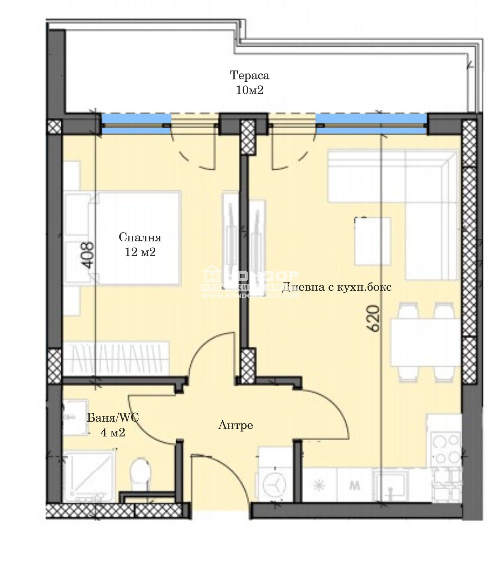Оферта 65931: Предлагаме Ви възможността да закупите двустаен апартамент в новоизграждащ се луксозен жилищен комплекс с модерна визия, проектиран да създаде максимален комфорт на живущите в него. Функционално разположени жилищни секции с елегантен силует готов да предложи комфорт и модерен начин на живот. Едно от основните му предимства е страхотната локация, отлична комуникативност и динамична пътна инфраструктура, която осигурява бърз и лесен достъп до комплекса от всяка точка на града. Той съчетава лукс, спокойствие и комфорт с подсигурени паркоместа и гаражи. Жилището се състои от дневна с кухненска част и трапезария, една самостоятелна спалня 12кв.м., баня с тоалетна, входно антре с място за перално и една панорамна тераса. Основната концепция при проектирането е да се постигнат просторни и функционални стаи, с цел да се създаде максимален уют на модерното семейство. Изключителна съвременна архитектура и модерна технология на строителство. Визията е иновативна, привличаща внимание с уникалността си. Всяко жилище ще разполага с пълно окабеляване за домофон, интернет и кабелна телевизия, общите части са луксозно завършени, жилищата са с алуминиева дограма с троен стъклопакет от най-висок клас, масивна блиндирана входна врата. За удобство на живущите съществува възможността да закупят подземни паркоместа и гаражи с топла връзка към комплекса. Гъвкави схеми на разсрочено плащане спрямо възможностите на клиента в рамките на строителството или закупуване чрез Банков Кредит, на изключително изгодни условия за клиенти на агенцията !!! Приложените изображения са от завършени проекти на строителната фирма.ВИЖТЕ ОЩЕ ИЗГОДНИ ОФЕРТИ НА https://www.kondorimoti.com/ С ЕЖЕДНЕВНА АКТУАЛИЗАЦИЯ!