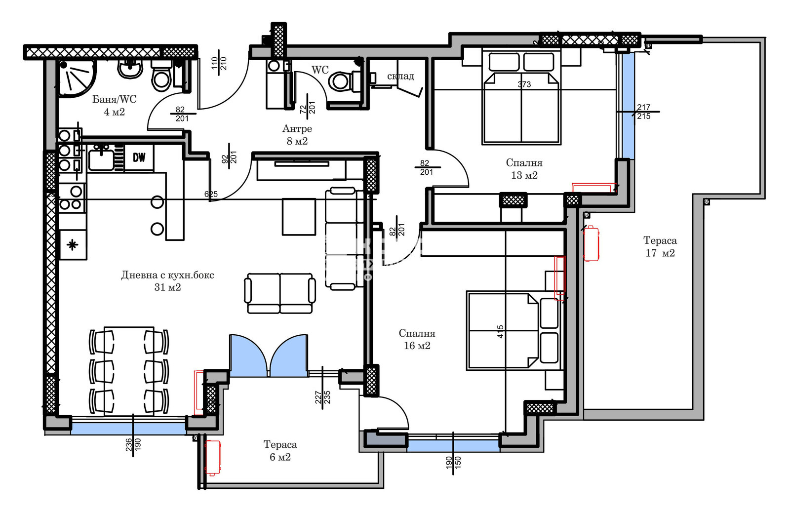 Оферта 65641: Предлагаме ви тристаен апартамент в новоизграждаща се модерна сграда с чудесна локация в близост до гребна база. Жилището, което ви предлагаме се състои се от южна дневна 31кв.м. с излаз на обща тераса, разделена на кътове: хол с мека мебел, трапезария и кухненски бокс, две самостоятелни спални: детска 13м2 и родителска 16кв.м., баня с тоалетна, втора тоалетна, килер с опция за гардероб, входно антре и панорамна тераса 21кв.м. Кооперацията се строи от реномирана фирма с множество готови сгради в града. Жилищата се отвършват според всички изисквания за качествено строителство с луксозни общи части: хидравличен асансьор, масивни Блиндирани входни врати, шест камерна PVC дограма, Австрийски червени тухли Винербергер - Porotherm. Приложените снимки в галерия са от друга готова сграда на строителната компания, за да придобиете представа за качеството и нивото на издаване на апартаментите. Свободни външни и подземни паркоместа, както и партерни и подземни гаражи. Възможност за разсрочено плащане в рамките на строителството или закупуване чрез Банков Кредит.ВИЖТЕ ОЩЕ ИЗГОДНИ ОФЕРТИ НА https://www.kondorimoti.com/ С ЕЖЕДНЕВНА АКТУАЛИЗАЦИЯ!