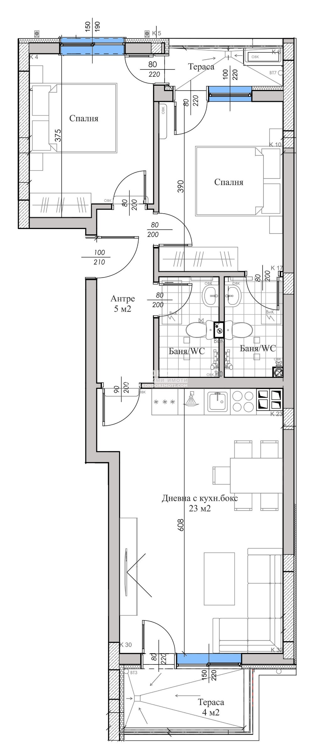 Оферта 65116: Предлагаме ви възможността да си закупите жилище в МАЛКА И ЛУКСОЗНА СГРАДА тип фамилна къща в един от най- предпочитаните райони на квартала в близост до Автогара Родопи и Централната част на града !!! Жилището се състои от дневна с трапезария и кухненски бокс 23кв.м., две самостоятелни спални с излаз на обща тераса: родителска със собствена баня и детска, втора баня с WС, една тераса, входно антре и прилежащо избено помещение с площ от 9,90кв.м. Сградата се отличава със съвременна архитектура в район с отлични комуникации. Изпълнява се от реномирана Строителна Компания, която разполага с множество готови сгради, като може да ви покажем готови жилища, за да видите качеството на изпълнение /приложен е снимков материал от готова сграда/. Перфектна локация, на приятно и спокойно място в близост до парк, училища, детска градина и удобен транспорт - ОТЛИЧНА ИНВЕСТИЦИЯ !!! Апартаментите се издават според всички изисквания за съвременно строителство - блиндирана врата, 6-камерна дограма, МДФ-вътрешни врати. Луксозно завършени общите части, двойна хидро и топло изолация, италиански хидравличен асансьор, гранитено стълбище, алуминиев парапет. Свободни Партерни Гаражи !!! Възможност за разсрочено плащане в рамките на строителството или Закупуване чрез Банков Кредит!!!