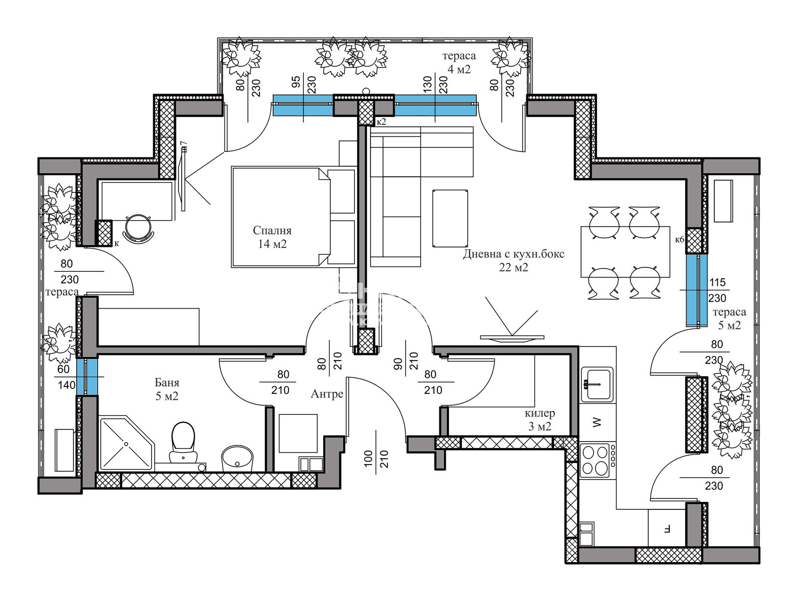 Оферта 64060: ГОЛЯМО ПАРКОМЯСТО в ЦЕНАТА !!! Имаме удоволствието да ви предложим БУТИКОВА СГРАДА с АКТ 16, разположена в центъра на гр.Пловдив. Модерна, стилна визия, перфектни общи части, облагороден вътрешен двор, осигурено паркиране. Сградата е на 5 етажа с общо 10 апартамента / по 2 на етаж/. Продава се двустаен апартамент, състоящ се от светла дневна с отделен кухненски бокс, една спалня, баня с тоалетна /с прозорец/, килер, антре и две тераси. За строителството на сградата са използвани материали от висок клас- каменна фасада с модерна визия, немска дограма VEKA с троен стъклопакет / шумоизолираща/, безшумен асансьор, общи части с декоративна мазилка и каменна настилка. Кооперацията се намира между Пловдивски, Технически и Аграрен университет. Имот подходящ както за инвестиция, така и за уютен нов дом!