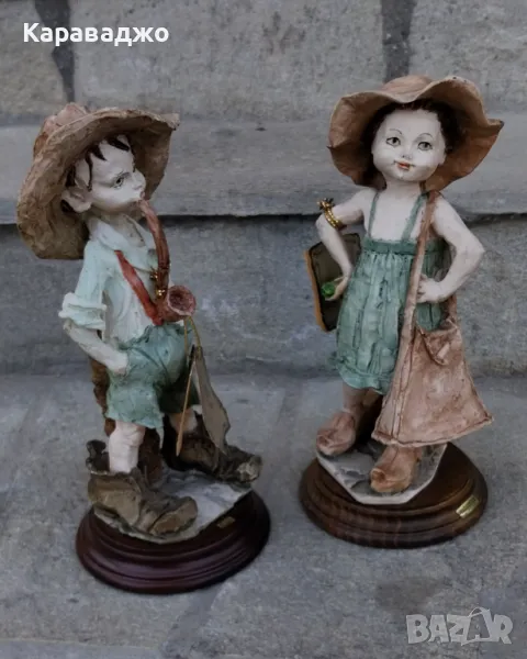 Старинни статуетки момче момиче на каподимонте смола-високи 26см.Перфектни!