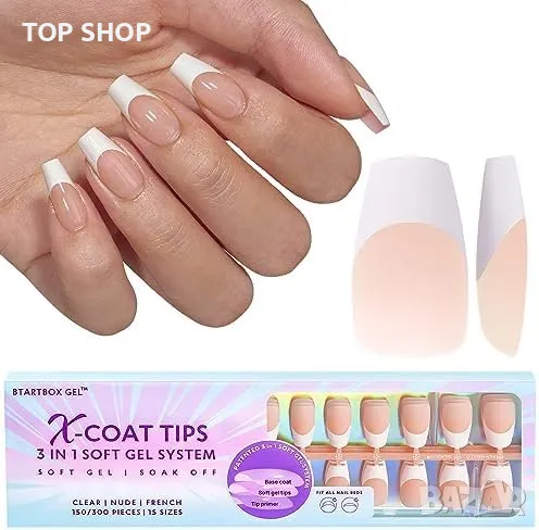 Включва 160 къси върха за нокти тип "ковчег", подходящи за професионална употреба и за маникюр "Направи си сам".