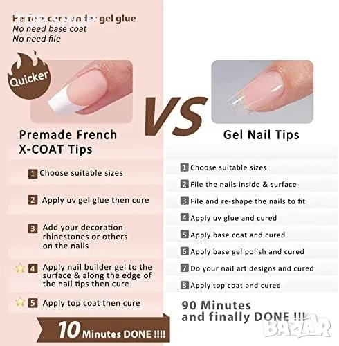 Включва покритие за грунд на накрайника и покритие за основен слой на накрайниците на гел ноктите за по-добро прилепване и издръжливост.
