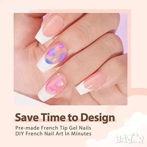 Готови за носене нокти, които не се нуждаят от отделен основен слой, което намалява времето и разходите за нанасяне.