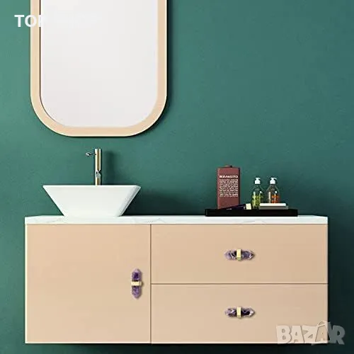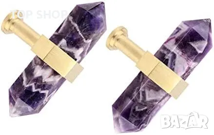 Нови 2 броя Луксозни кристални дръжки за мебели - естествен аметист