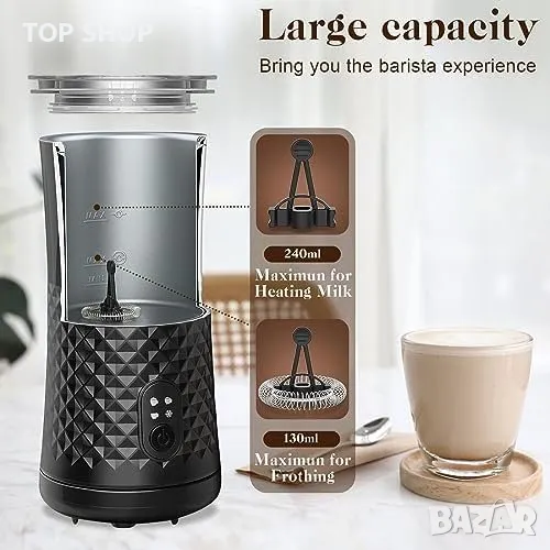 Нова Електрически Млекопенител 4 в 1 Гореща Студена Пяна 240ml Неръждаема Стомана