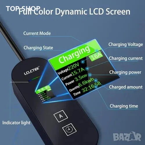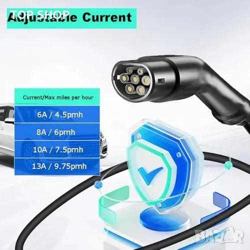 Регулируем ток: Настройки 8/10/13A за оптимално зареждане и удължаване на живота на батерията.
