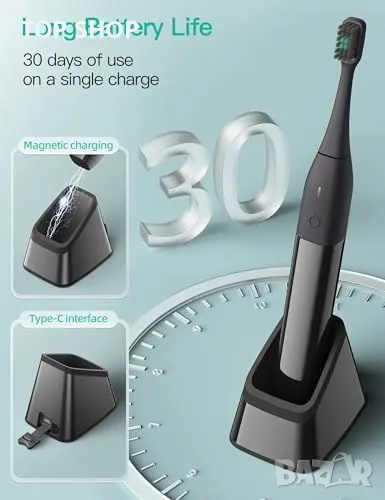 Нова Луксозна Черна Звукова Четка за Зъби уста M1 - Полираща и Мека
