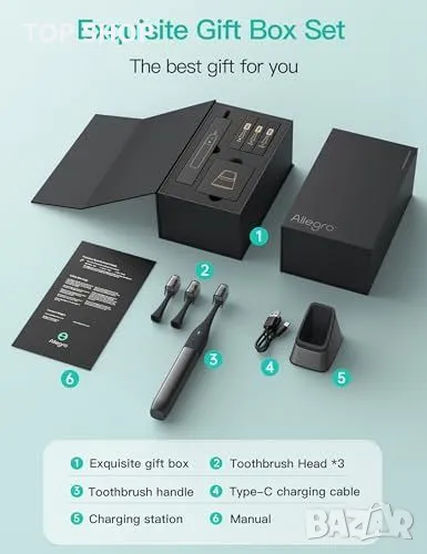 Луксозна звукова четка за зъби Allegro M1 (Черна)