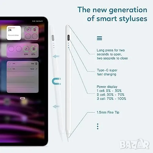 За Apple 2-ро поколение е съвместим с Apple iPad Pro 11 инча (4-то, 3-то, 2-ро, 1-во поколение); iPad Pro 12,9 инча (6-то, 5-то, 4-то, 3-то поколение); iPad mini (6-то, 5-то поколение); iPad Air (5-то, 4-то, 3-то поколение), iPad (10-то, 9-то, 8-мо, 7-мо, 6-то поколение), iPad Air (3-то поколение), iPad mini (5-то поколение). Не работи за iPad pro 1-ви и 2-ри, iPad pro 10,5" , iPad pro9.7", По-ранни версии за iPad, IPhone, Android, устройство на Microsoft.Купенa от Амазон