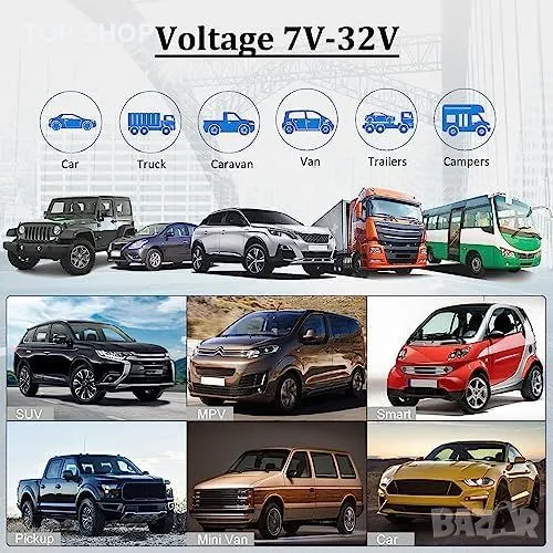 Универсално съвместим: Подходящ за всички видове превозни средства с напрежение от 7V до 32V.