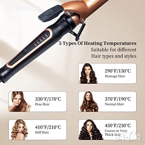 5 регулируеми температури от 150°C до 230°C, подходящи за всякакъв тип коса