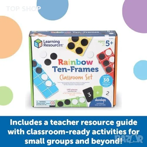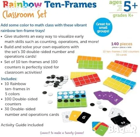 Образователни ресурси: Комплект от ранни математически помагала, включващ 10 цветни рамки и 100 брояча.