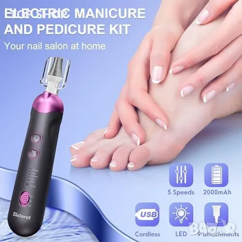 Eletorot Маникюрен и Педикюрен Комплект: Безжичен и удобен за всяка дамска чанта.