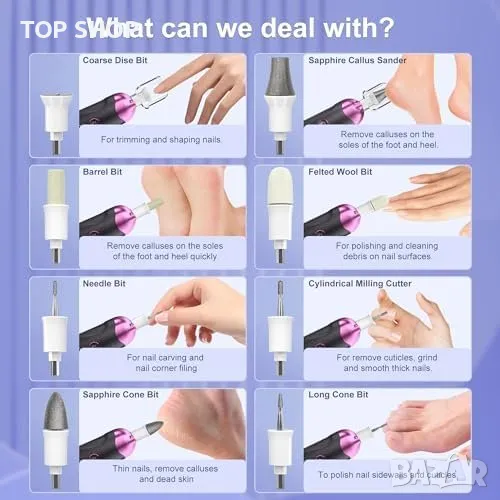 Нов Eletorot Педикюрен Сет за Дебели Нокти - 3 ч. Работа, 8 Приставки → Обява 49956940