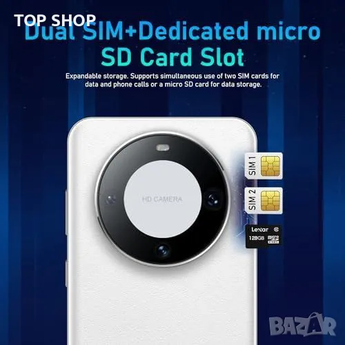 Поддържа 2 Nano SIM карти и до 128GB SD карта